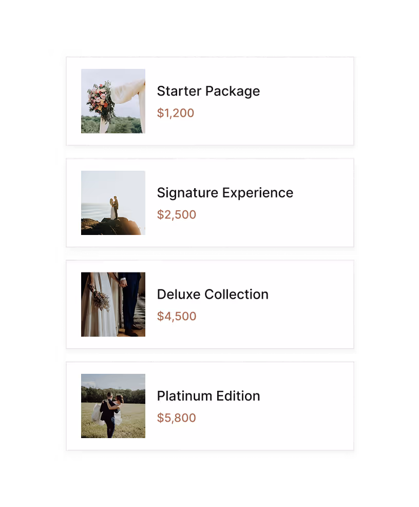 Show your services and pricing clearly so couples can book with confidence