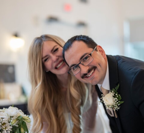 The reception was filled with heartfelt toasts, an energetic dance floor, and tender moments shared with loved ones. A three-tier white cake adorned with fresh roses echoed the day’s soft, elegant palette. R Studios photographed the celebration with warm clarity and a discerning eye for emotion, giving the couple a gallery that feels intimate and beautifully composed. Adam David Weddings captured the movement and energy on film, while Makeup By Mugg perfected Monique’s radiant bridal look.