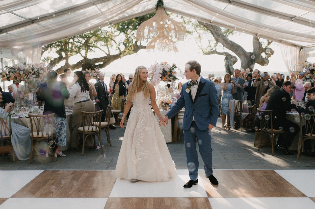 The evening closed with a joyful bubble send-off, as the couple departed surrounded by cheers, shimmering light, and the unmistakable energy of a Charleston spring wedding.