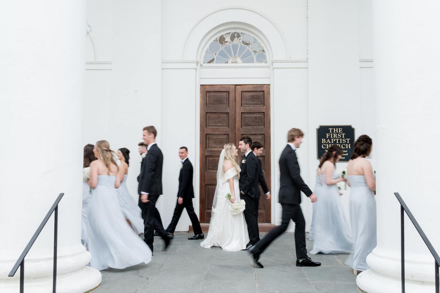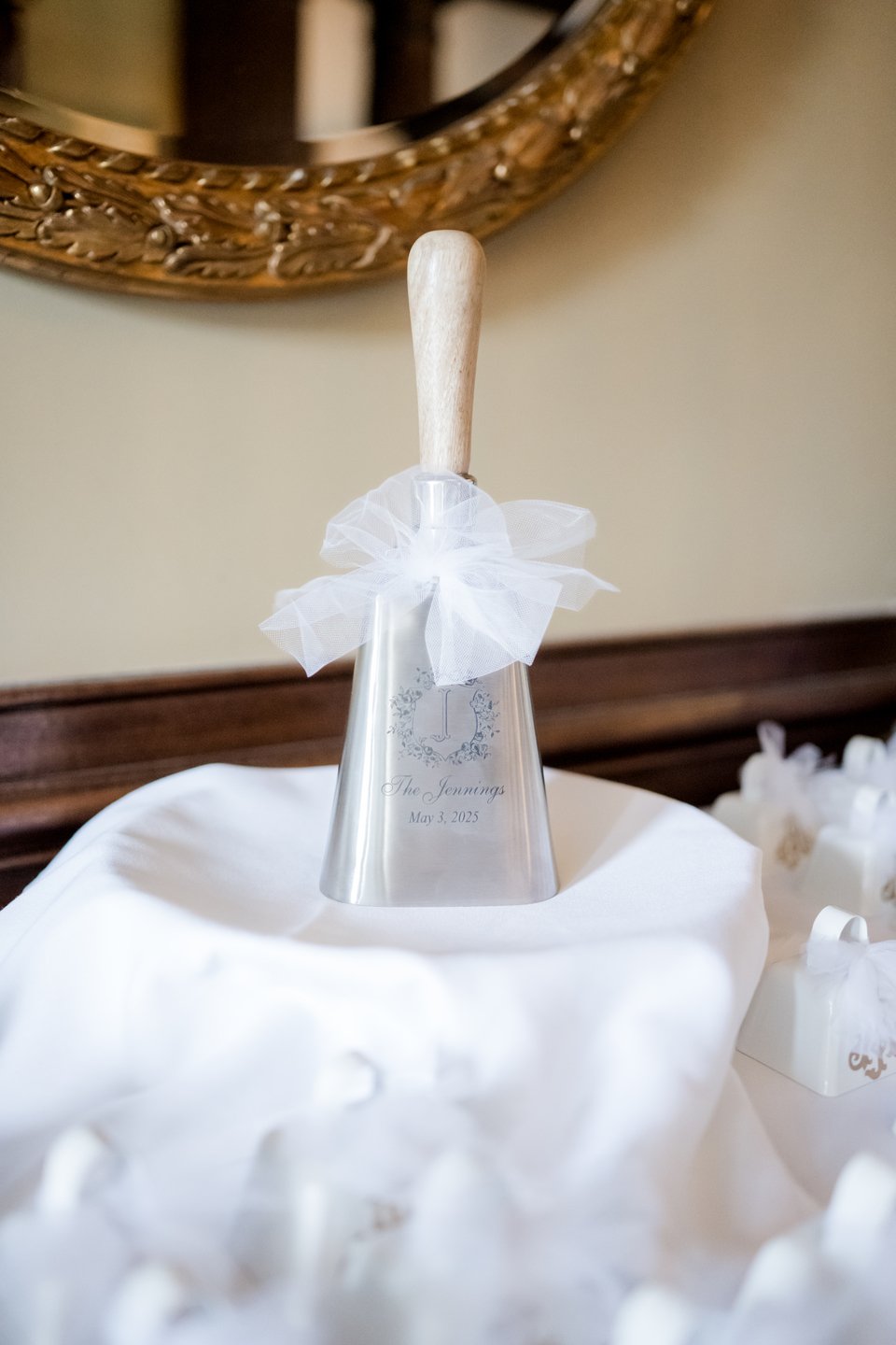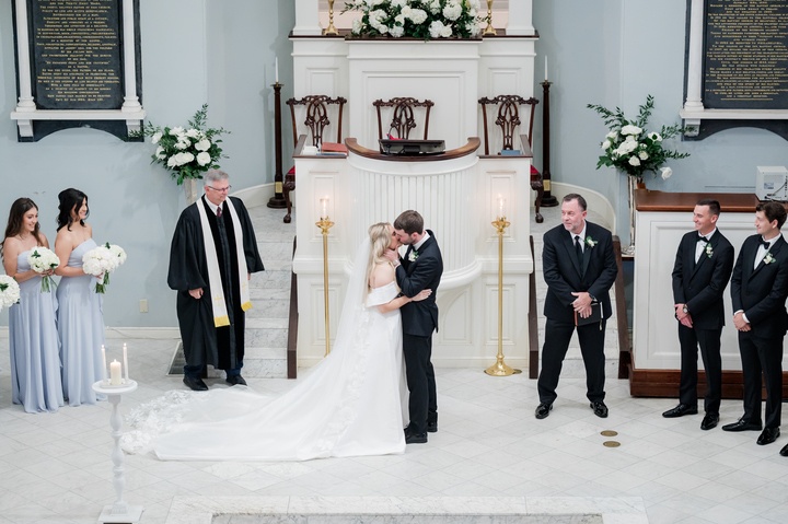 With Sammond Events orchestrating every detail, Leigh Hayward Photography preserving the day in luminous imagery, and Will Wright Films capturing its spirit in motion, the celebration unfolded with effortless grace. Jennifer wore an off-the-shoulder gown with a dramatic train and carried a bouquet of white hydrangeas, her father’s favorite flower. A charm bearing his photo rested within the bouquet, a tender detail that kept him close throughout the day. Hydrangeas also filled the bridesmaids’ and mothers’ bouquets, weaving memory and beauty into the ceremony. Aaron looked timeless in a black tuxedo accented with a white boutonnière that echoed Jennifer’s bouquet.