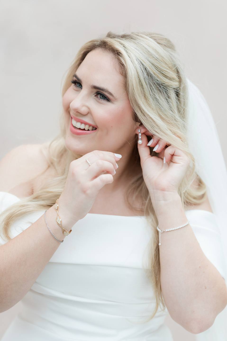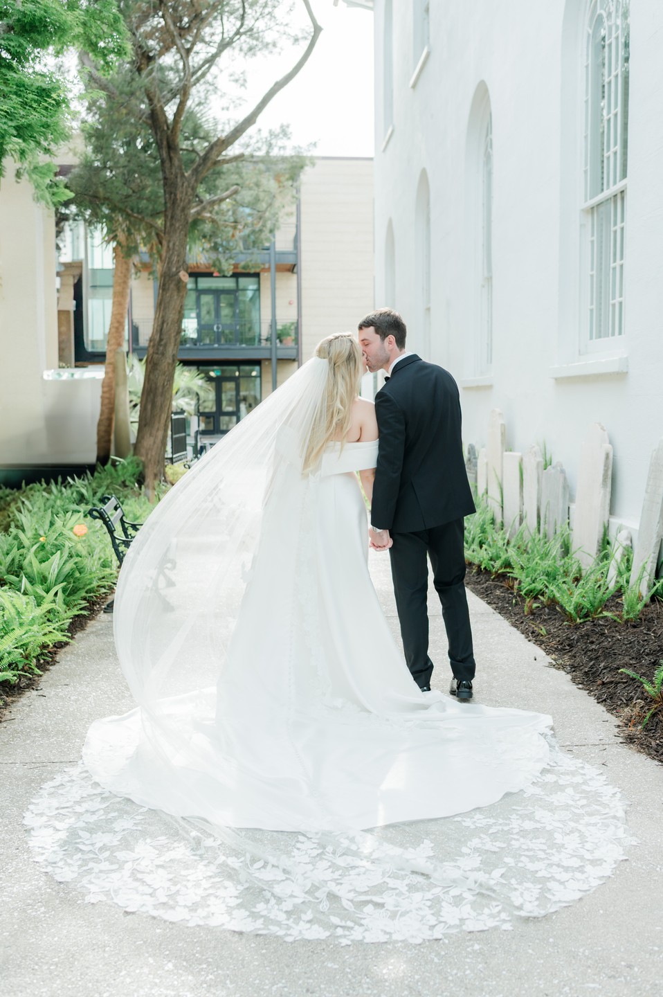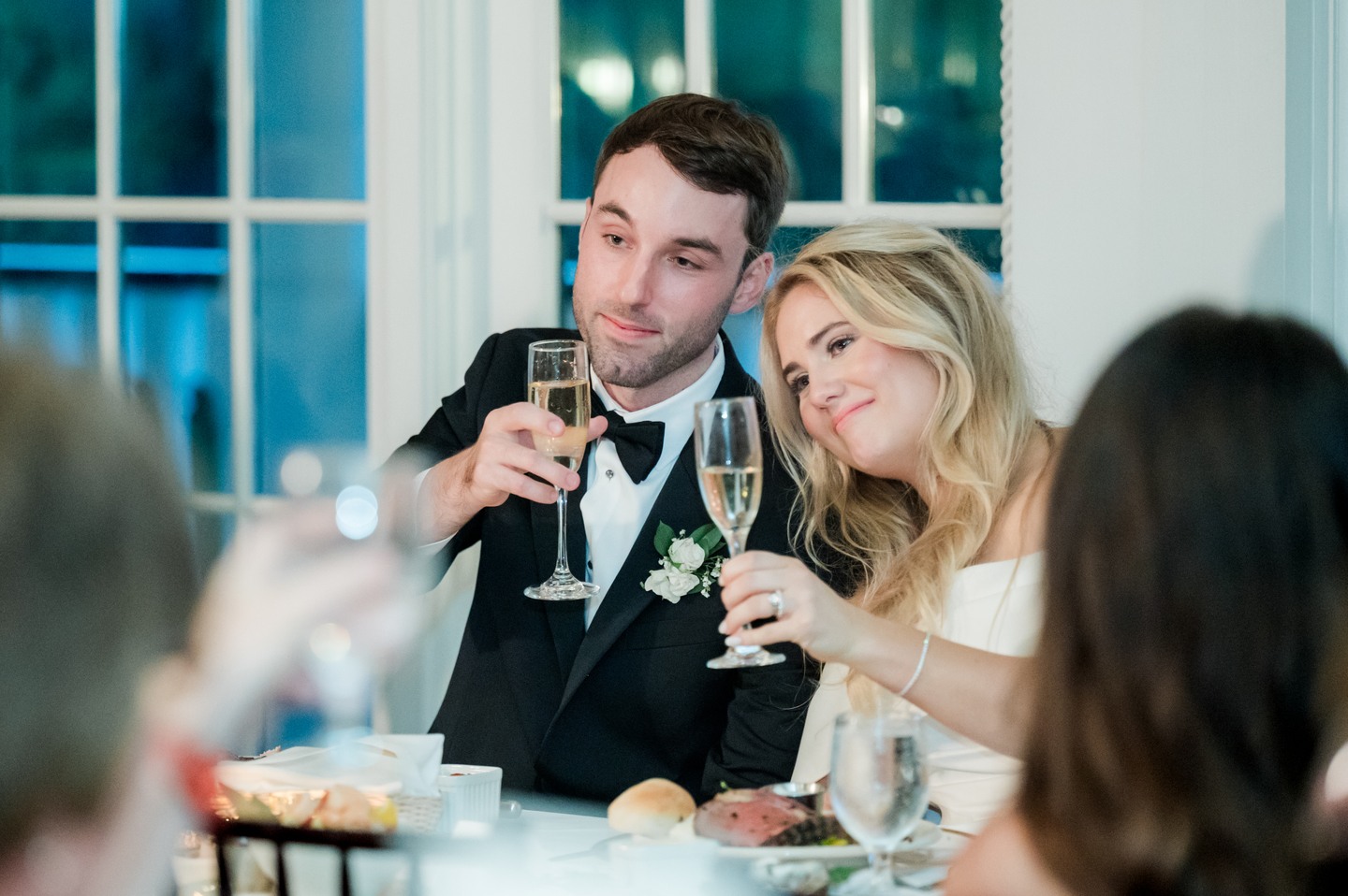 With Sammond Events orchestrating every detail, Leigh Hayward Photography preserving the day in luminous imagery, and Will Wright Films capturing its spirit in motion, the celebration unfolded with effortless grace. Jennifer wore an off-the-shoulder gown with a dramatic train and carried a bouquet of white hydrangeas, her father’s favorite flower. A charm bearing his photo rested within the bouquet, a tender detail that kept him close throughout the day. Hydrangeas also filled the bridesmaids’ and mothers’ bouquets, weaving memory and beauty into the ceremony. Aaron looked timeless in a black tuxedo accented with a white boutonnière that echoed Jennifer’s bouquet.
