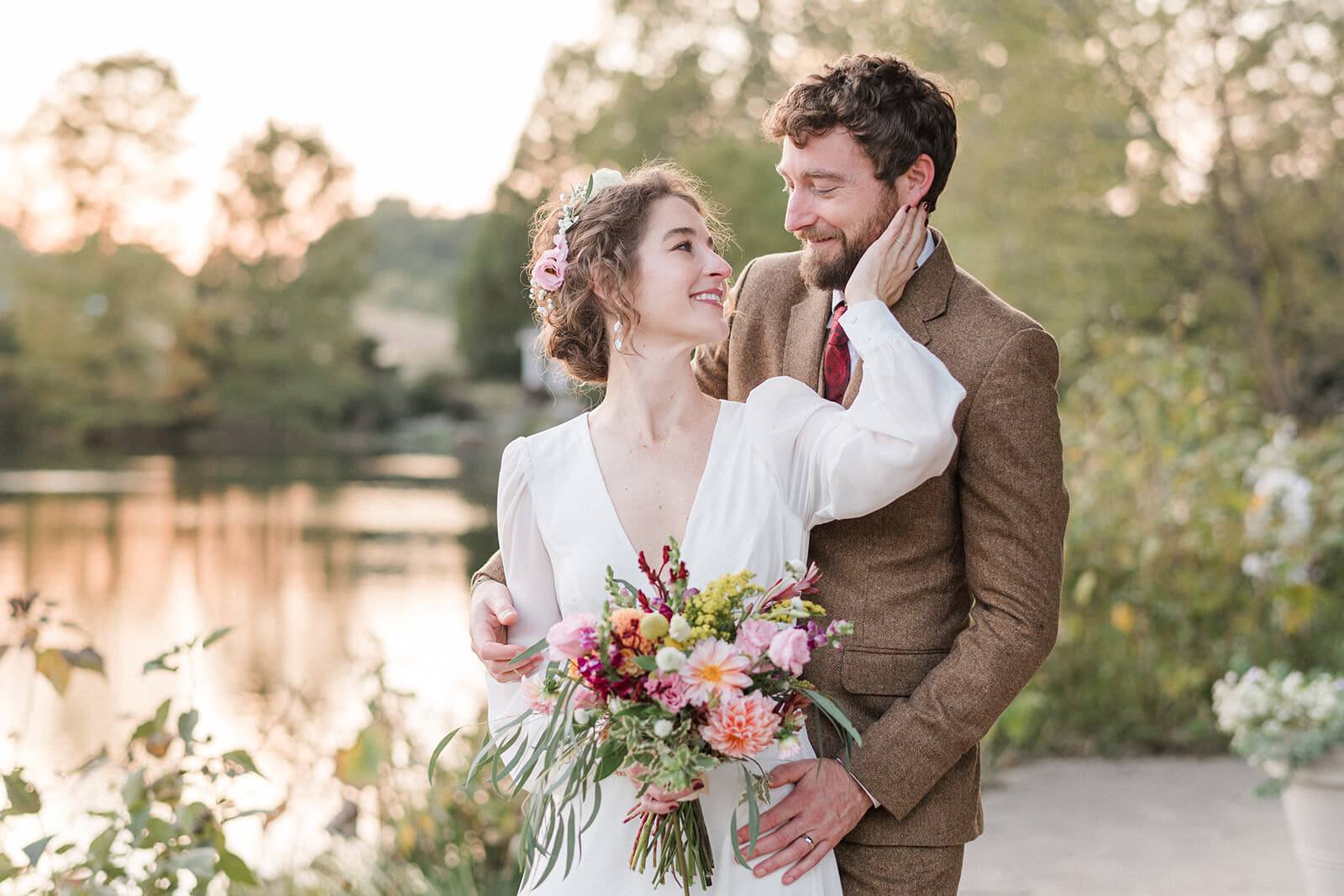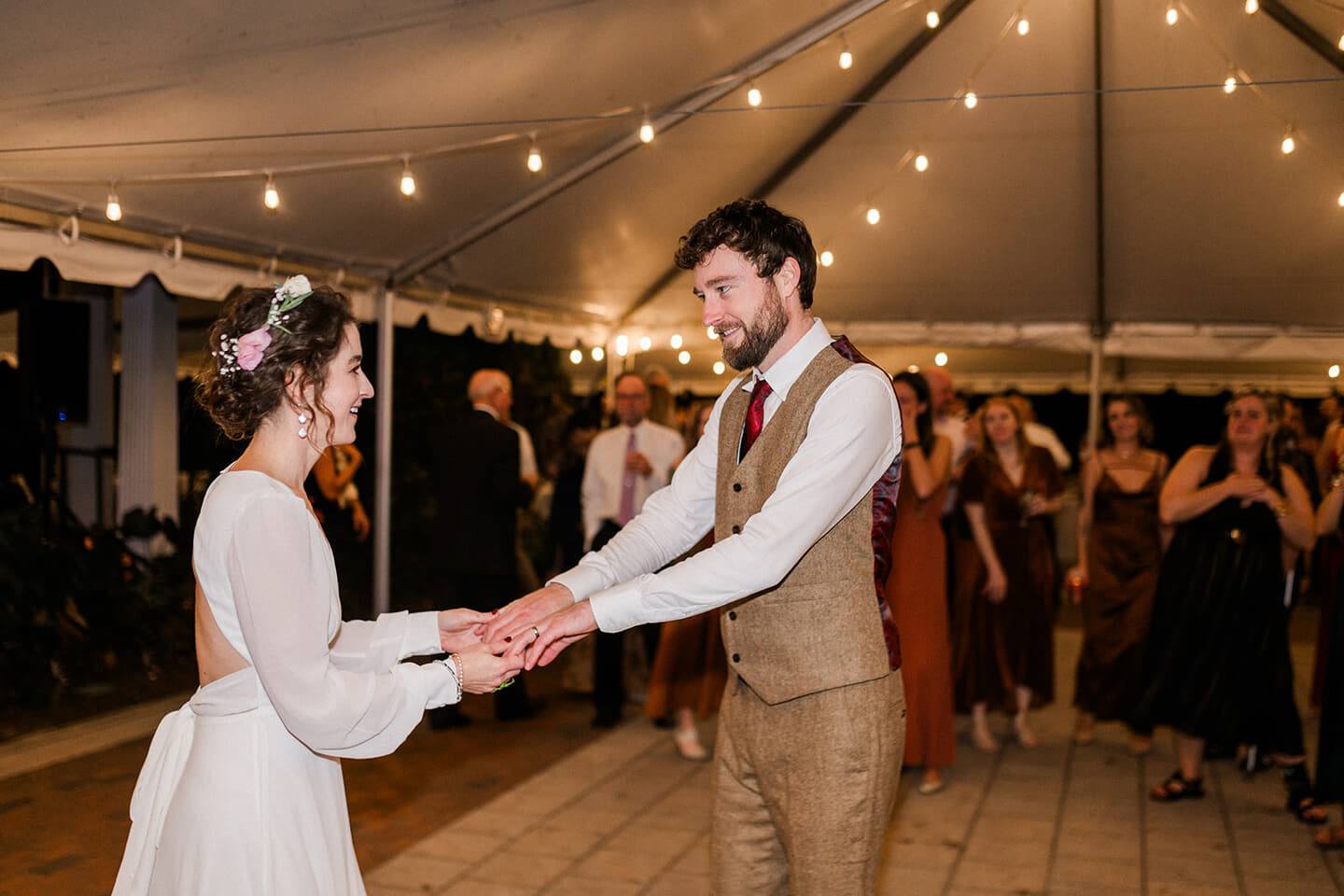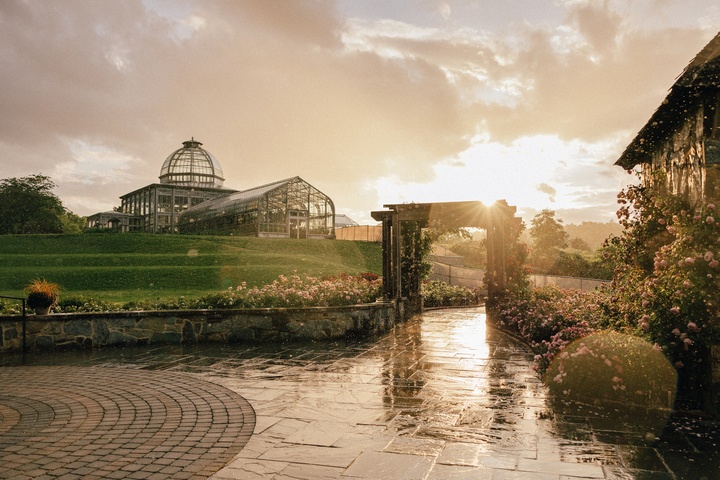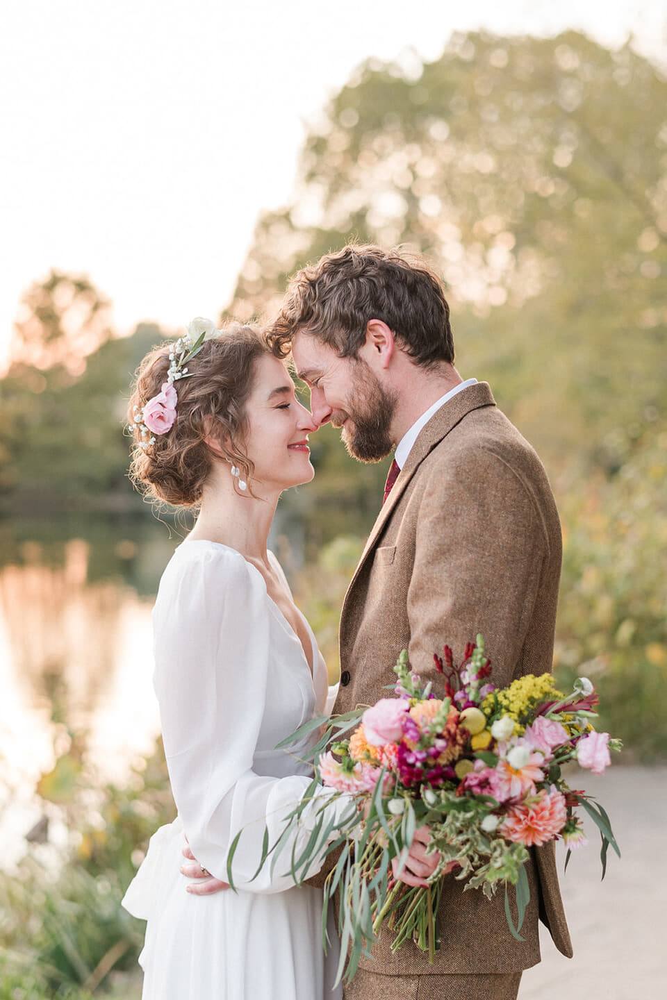 Caroline and Chris’s October wedding at Lewis Ginter Botanical Garden unfolded in a breathtaking display of autumn beauty, where golden sunlight filtered through lush foliage and palm fronds to create an atmosphere of quiet enchantment.