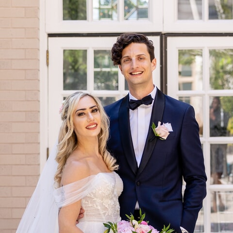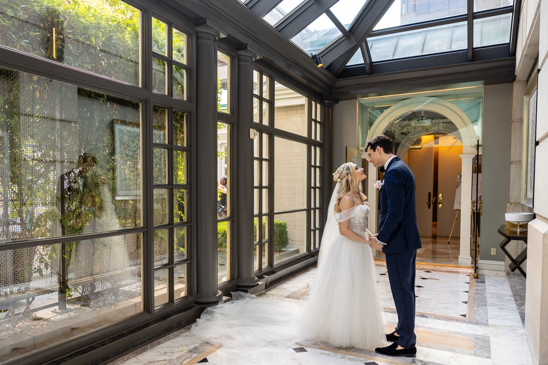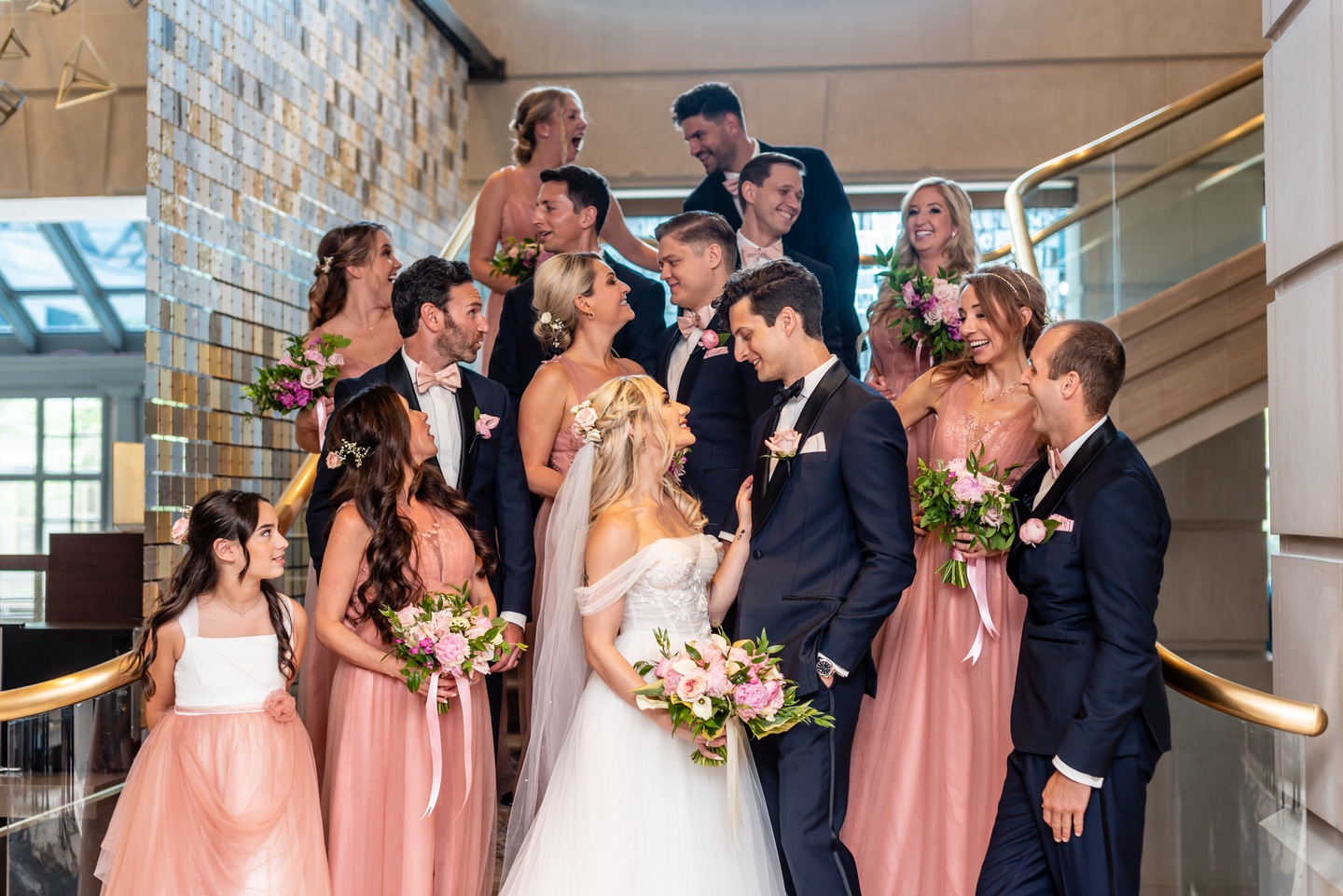 Catherine and Daniel exchanged vows on a radiant June day at the Fairmont Washington, DC, where soft blush tones and classic sophistication blended seamlessly with the venue’s iconic architectural backdrop. The Fairmont’s grand event spaces transformed into a dreamy, light-filled setting, with arched windows, crystal chandeliers, and gentle pink uplighting creating an inviting glow. Sensational Soirees guided the day with thoughtful intention, ensuring every moment felt effortless. The wedding party echoed the palette in navy and blush, while Lucy Black Entertainment’s strings added warmth and refinement to the ceremony.
