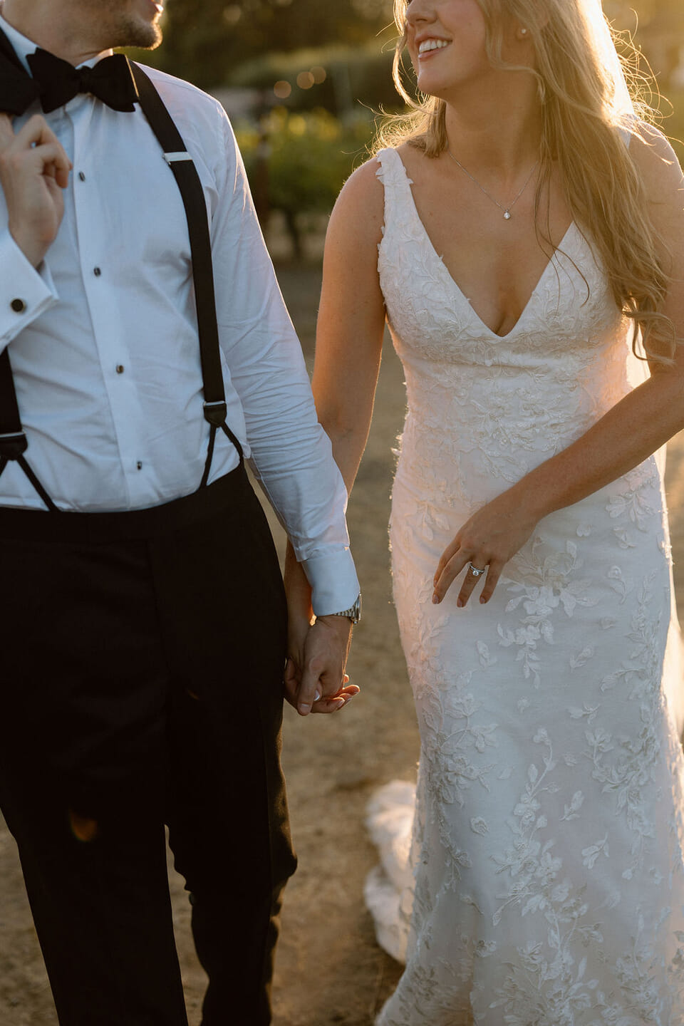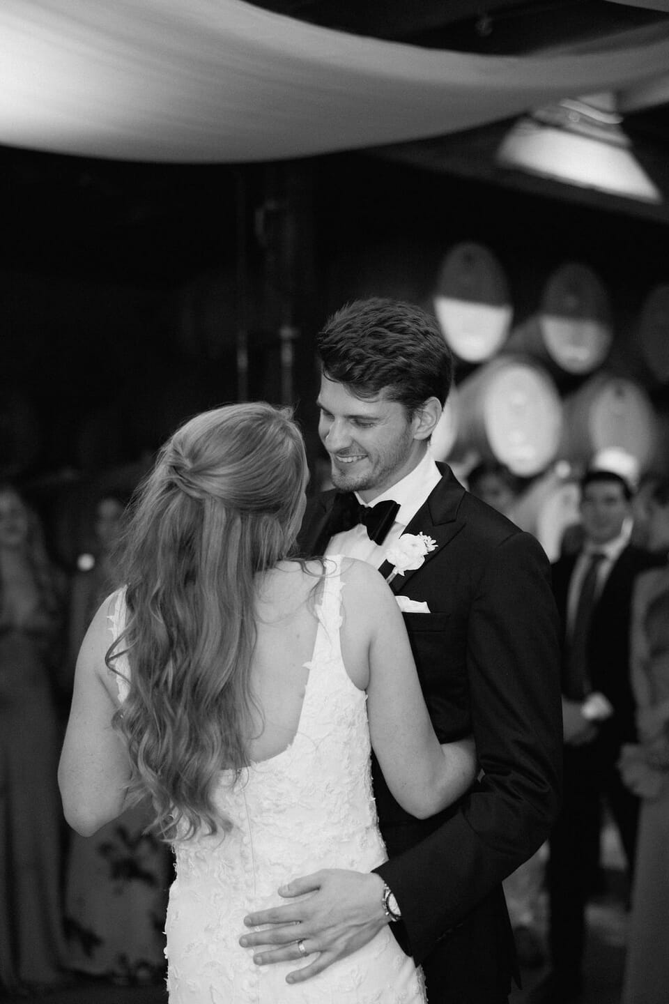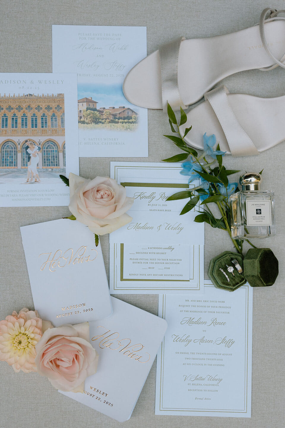 The reception embraced V. Sattui Winery’s old-world charm with candlelit tables, crisp white linens, and lush white centerpieces. Guests enjoyed estate-driven cuisine and curated wines as Lucky Devils Band filled the evening with energy, while Blue Note Weddings captured the movement and emotion on film. Katelyn Bradley Photography portrayed the day with luminous, editorial artistry, highlighting the quiet moments and joyful connection woven throughout the celebration. Madison and Wesley’s wedding was a graceful blend of elegance, warmth, and Napa Valley soul.