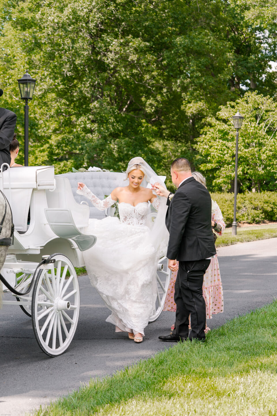 Petals & Lace Events curated the day with refined intention, while The Flower Guy Bron adorned the ceremony with soft pink and white blooms that trailed beautifully along the estate’s architecture. Raquelle arrived by carriage from Hundley Carriages before making her entrance behind a graceful ballerina.