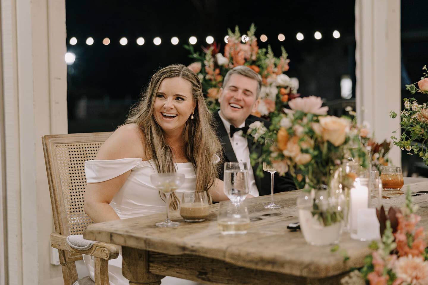 The day beautifully balanced sophistication with joyful spontaneity. Music from Ibis Music Group filled the air as Lauren, radiant with a bouquet of blush roses, chamomile daisies, and lush greenery, walked toward her groom. Surrounded by family and friends, the couple exchanged heartfelt vows beneath soft peach and cream florals by Vogue Flowers, the ceremony aglow with candlelight and emotion.