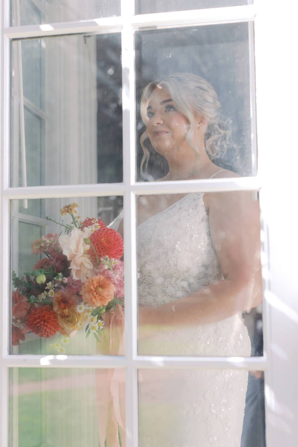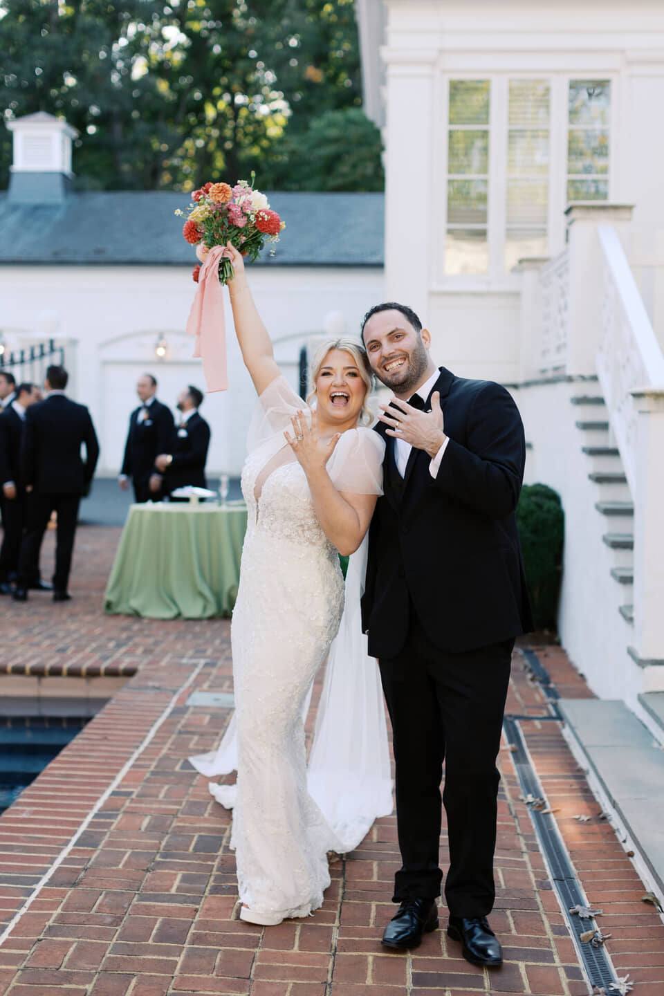 Alex & Joey’s October wedding at Keswick Vineyards was a joyful celebration of love, wrapped in vibrant autumn hues and the golden light of Charlottesville’s countryside. Set against the vineyard’s rolling hills and timeless stone architecture, the day unfolded with effortless charm. Alex wore a slinky lace gown with sheer long sleeves and a graceful train, her blonde waves softly framing her radiant smile. Joey looked every bit the classic groom in a black tuxedo, a perfect complement to the season’s warm palette.