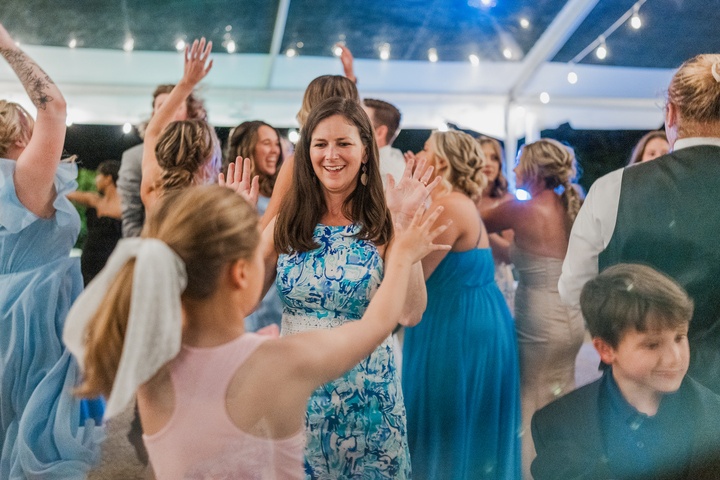 The soft color palette of blush, blue, and white created an elegant and romantic ambiance throughout the wedding day. Melanie's one-shoulder gown featured a fitted bodice and flowing skirt, accentuated by a delicate beaded belt. Her cascading blonde curls were adorned with a flowing veil, framing her radiant smile. Dillon looked dapper in a classic navy suit with a coordinating bow tie.