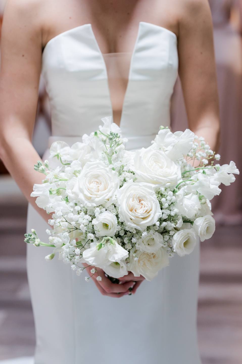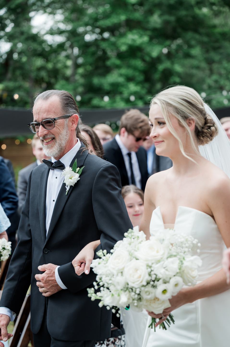 Reilly and Luke celebrated their wedding on a radiant May afternoon at Hart Meadows Ranch, where sweeping lawns and massive live oaks created a breathtaking backdrop for their springtime celebration. Charlotte Grace Wedding Design orchestrated the day with elegance, ensuring every detail felt harmonious and intentional. The ceremony took place beneath oak branches that stretched like a natural cathedral, their shade dappling the manicured lawn with soft light. Wooden chairs framed the aisle, which was lined with floral artistry from Sweetleaf Floral. The bride carried a bouquet of white roses, baby’s breath, and greenery, a graceful complement to her strapless gown. Bridesmaids in soft neutral tones completed the scene with understated sophistication.