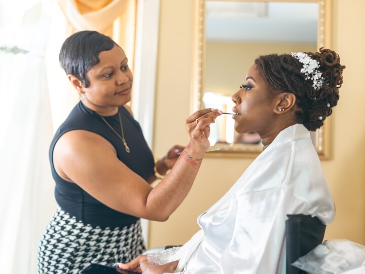 April’s arrival brought the beauty of spring to Shentel and Kyle’s vibrant wedding day at Amber Grove in Moseley, Virginia. A warm breeze and lush, verdant landscapes set the perfect scene as the couple exchanged their vows, surrounded by their closest friends and family. The ceremony bloomed with the romantic charm of garden-inspired floral arrangements by Flowers by Zoie, featuring hydrangeas, blush roses, and delicate blue delphinium, all gracefully intertwined with ferns. Shentel looked radiant in her sleek, flowing white gown, her natural curls crowned with a delicate floral arrangement, expertly styled by Shaylah Monet. Kyle complemented her beauty in a tailored navy suit and blush pink bowtie. Every moment was artfully preserved by Jawfox Productions, LLC, whose expert eye beautifully encapsulated the essence of the day, from the intimate exchange of vows to the joyful celebrations that followed.