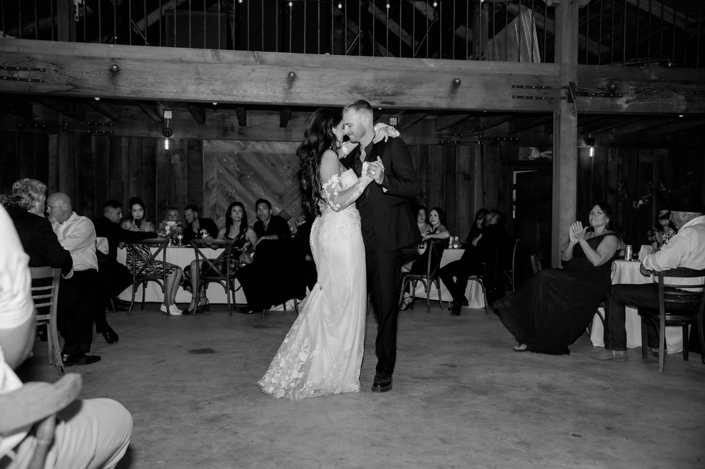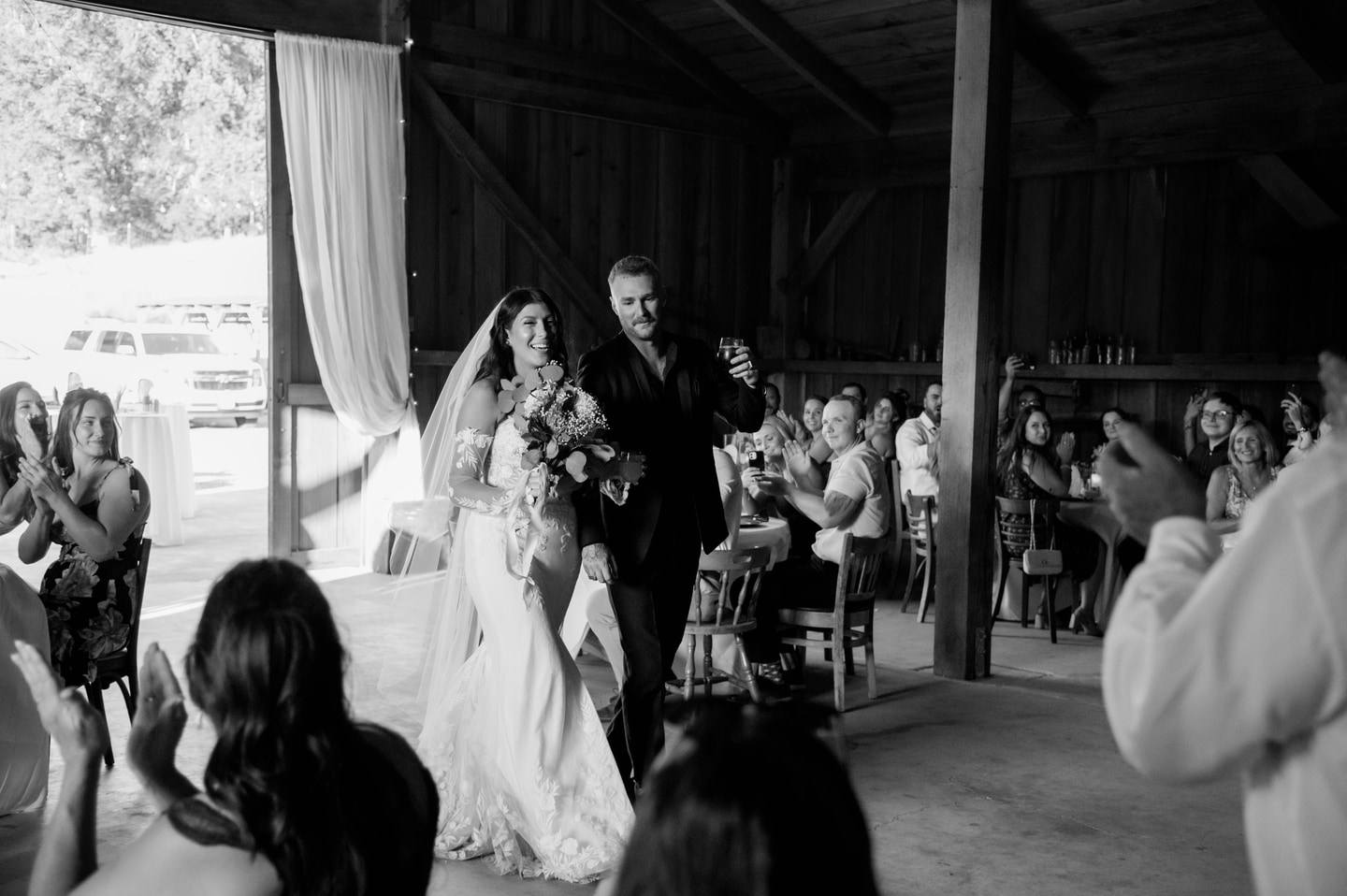 The reception embraced a minimalist warmth. String lights cast a soft glow across the wooden interior, creating an inviting atmosphere for dining and dancing. A mobile bar by The Drunk Pony introduced a playful, contemporary touch, while music by Runaway DJ carried the energy into the evening. Thoughtful coordination by Cassie Baddeley allowed the day to unfold with ease, while Ashley Sholin Photography preserved the celebration with an editorial, emotive eye.