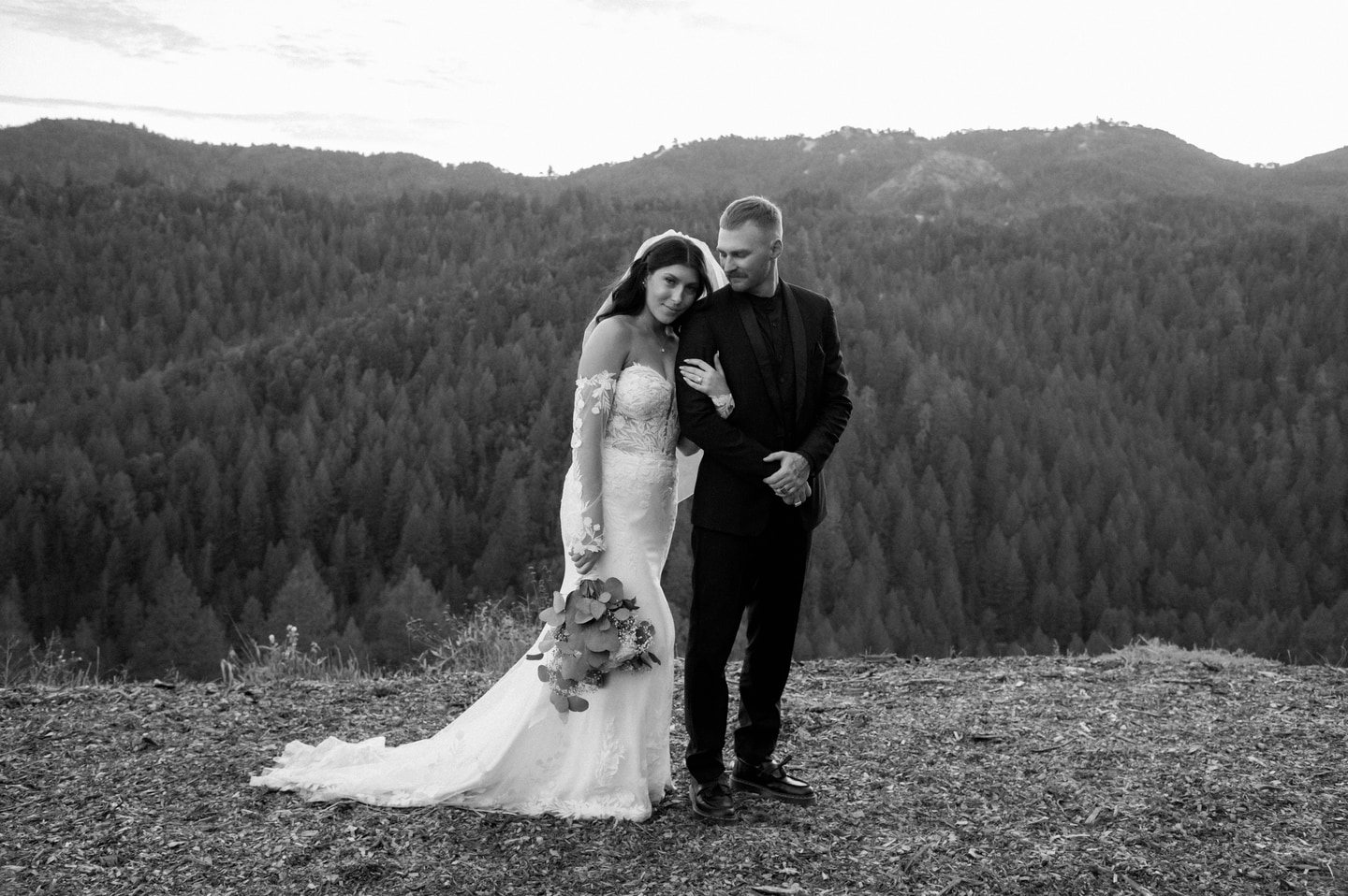 Danielle and Alec celebrated their wedding on an October day at Crows Peak Ranch, where the rugged beauty of Northern California’s mountain landscape set an unforgettable stage. Dense evergreen forests and rolling terrain surrounded the celebration, grounding the day in a sense of quiet drama and natural elegance.