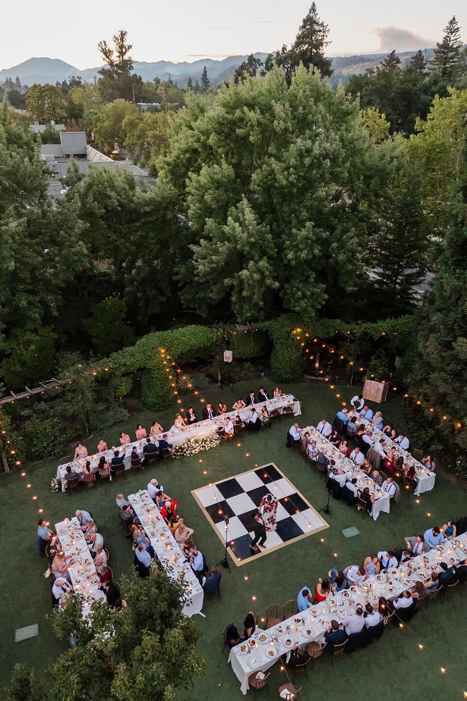 As evening settled in, the garden transformed into a softly illuminated celebration. Katrina and Logan shared their first dance on a classic black and white floor from Bickner Dance Floors, surrounded by loved ones and framed by glowing lights and silhouetted hills. Throughout the day, Natalie Renee Photography, alongside second photographer Nicole Rachelle Anthony, portrayed the celebration with a romantic, editorial sensibility, while Interstellar Films translated the day into cinematic motion.