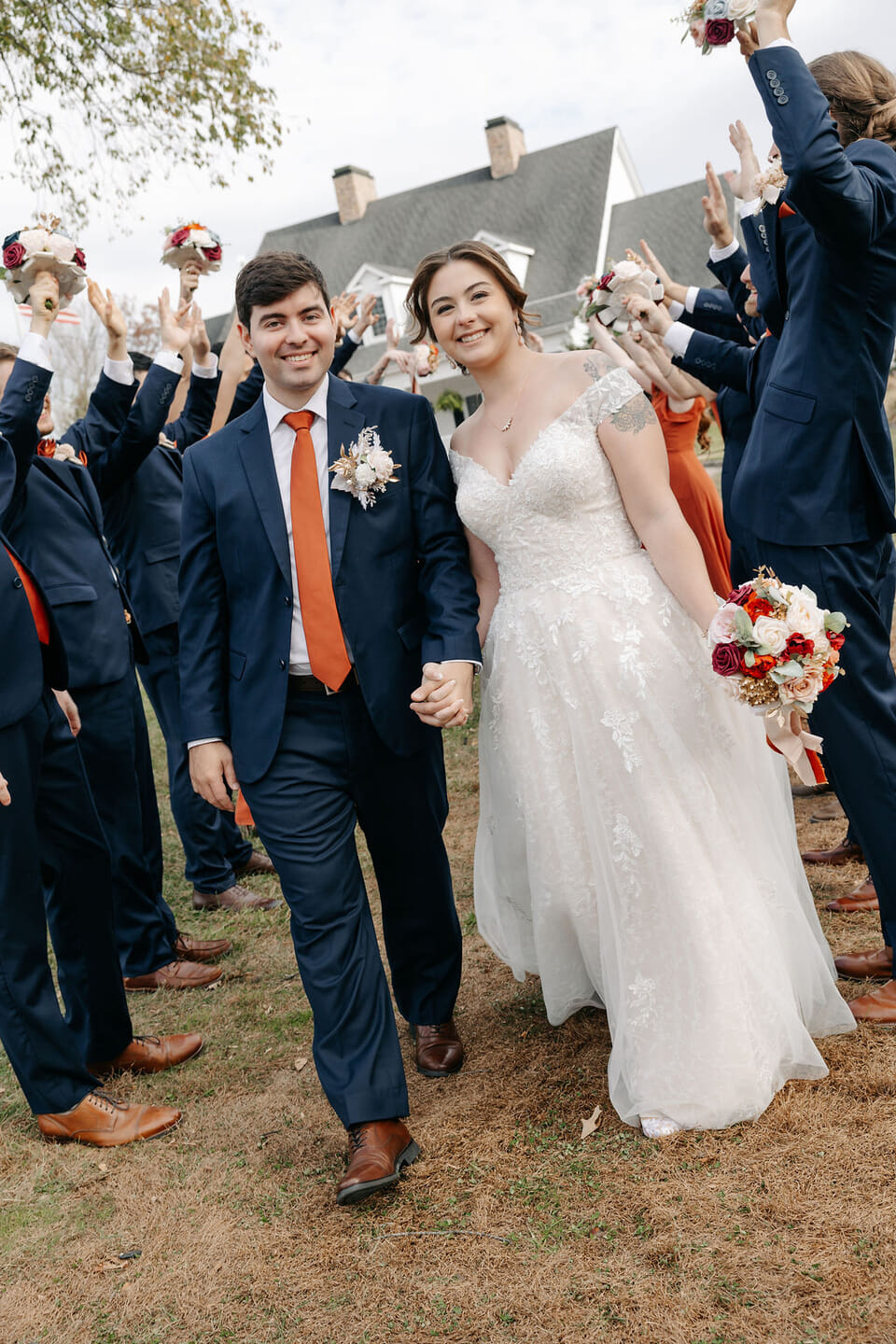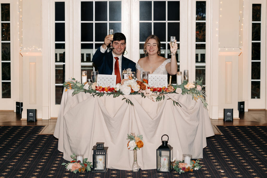 The reception embraced layered tones of terracotta, gold, and amber, glowing softly under candlelight. Tables were styled with runners, lush floral arrangements, and warm votives, while the sweetheart table was framed with cascading greenery and blooms. Catering by Westfields Golf Club carried the experience effortlessly into the evening, where the dance floor came alive beneath chandeliers with moments that felt both joyful and unforgettable. Jessica Rabelo Photos presents the day with a soft, natural perspective, highlighting both the setting and the genuine energy throughout.