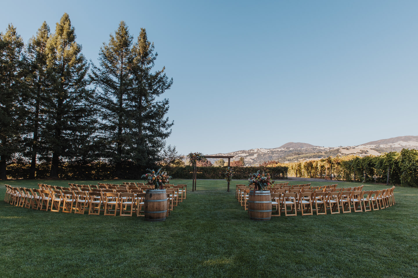 Racquel and Mike’s October celebration at Trentadue Winery was a warm, vineyard-soaked portrait of autumn romance. Seven Oh Seven Events brought their vision to life with Dragonfly Floral’s dahlias, eucalyptus, and harvest tones creating a ceremony scene that felt naturally woven into the landscape.