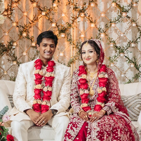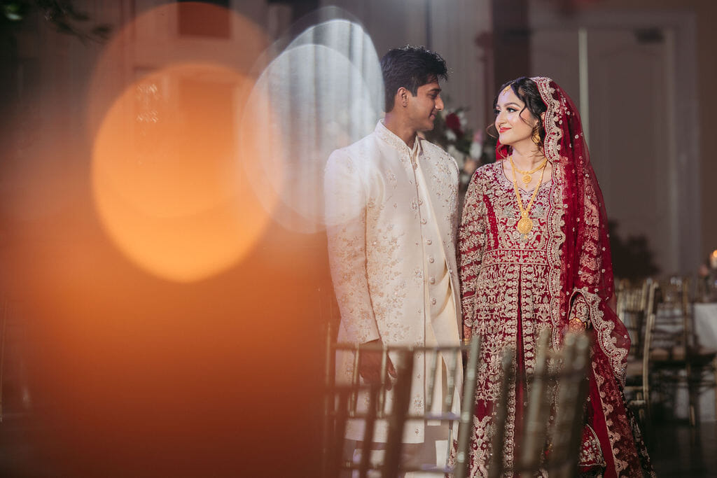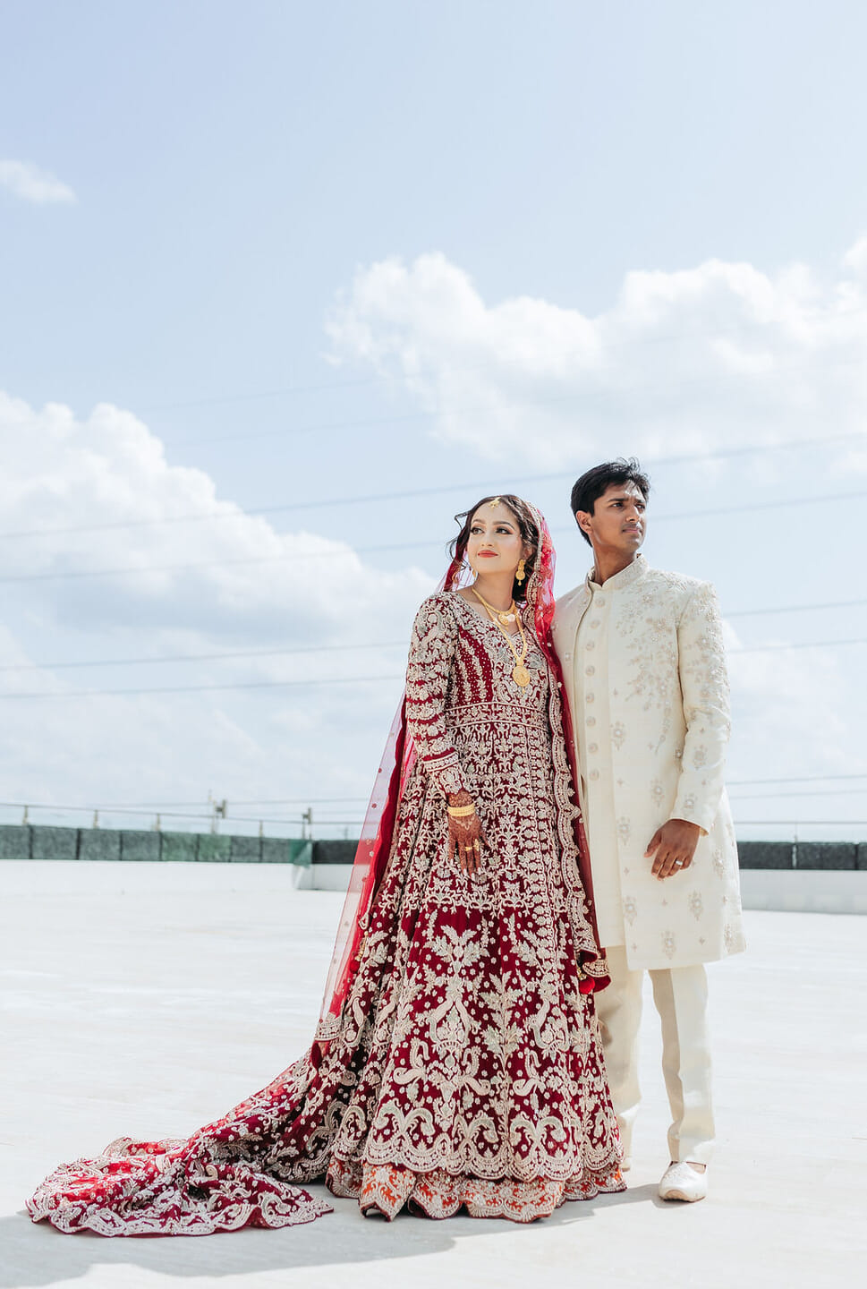 Gulnaz and Afnaz celebrated their August wedding at The Bellevue Conference & Event Center in Chantilly, Virginia, with a celebration defined by cultural tradition, romance, and striking opulence. Their day unfolded in a dramatic palette of deep crimson, pristine white, and soft blush, creating a visual story that felt both regal and deeply personal.