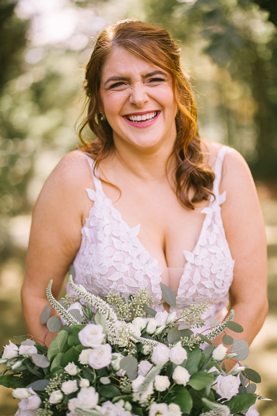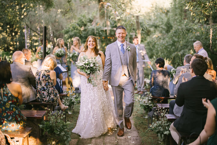 Pure joy radiated from Autumn, her whimsical gown adorned with delicate three-dimensional petals that fluttered with every breeze. Her laughter carried through the gardens as she held a bouquet of wildflowers—ivory blooms and soft lavender accents artfully arranged by nature itself. Beside her, Justin looked effortlessly refined in a relaxed gray suit, while their beloved pups, Endo and Herbert, completed the picture of family and devotion. Ashley Ancheta Makeup and Jessica Comiskey enhanced the bride’s natural glow with soft, ethereal beauty, perfectly reflecting the day’s romantic tone.