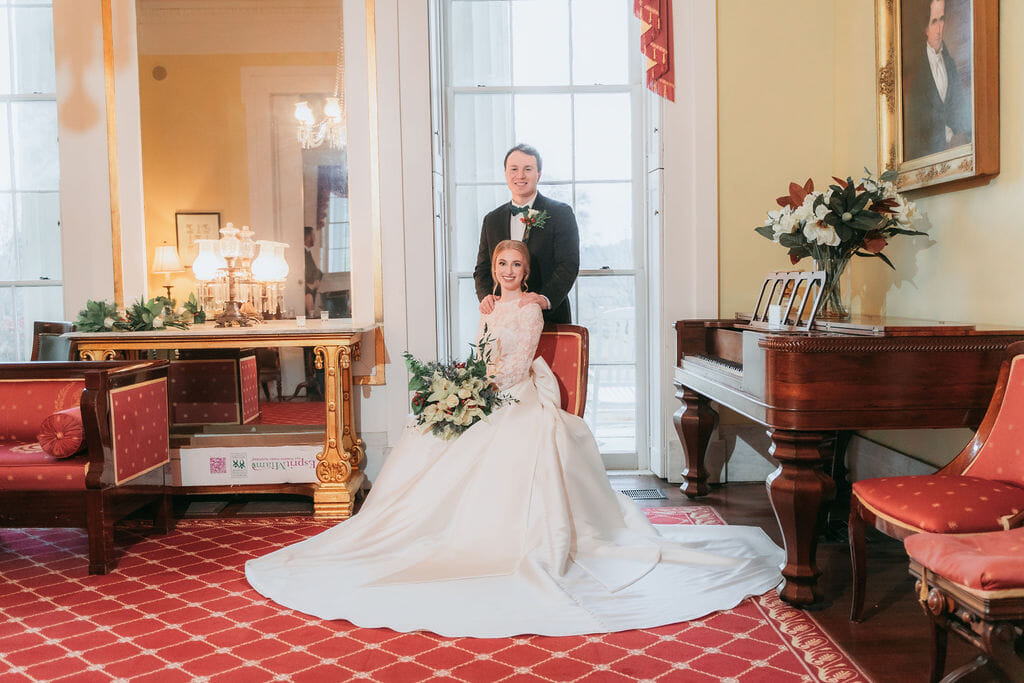 Anna and Josh celebrated their winter wedding in early January at the historic Berry Hill Resort in South Boston, Virginia. The venue’s warm interiors and timeless charm created an intimate backdrop for a celebration filled with laughter and quiet seasonal magic.
