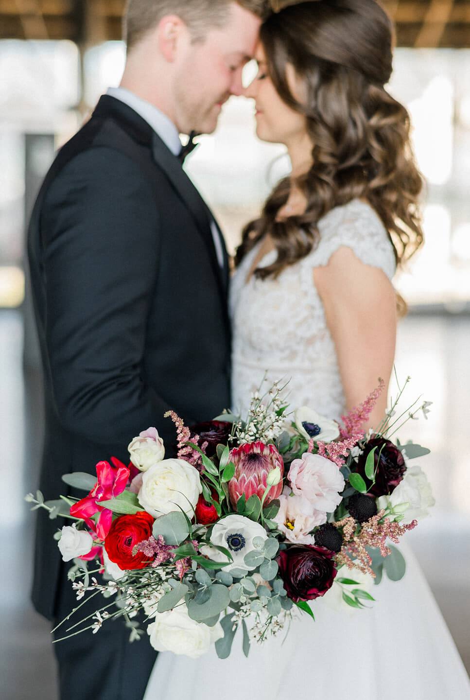 The evening’s details were elevated with rentals from Classic Party Rentals of VA, while Shyndigz delighted guests with a beautiful ombré chocolate-and-cream cake topped with a single red ranunculus. Brittany Lowe Photography captured every moment with graceful precision, highlighting both the architectural grandeur and the couple’s heartfelt connection. Hannah and Matt’s wedding at Main Street Station was a celebration of timeless romance and refined beauty—an unforgettable evening filled with warmth, love, and the glow of winter magic.