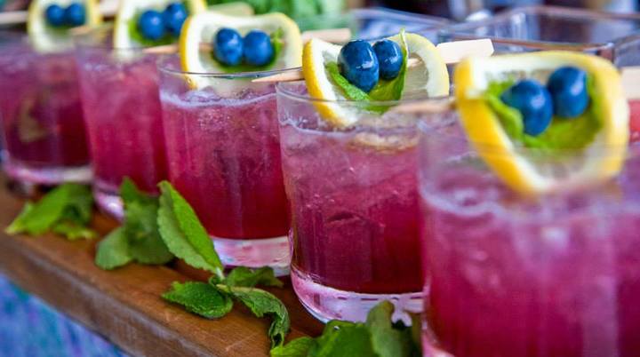 As golden light gave way to evening, guests gathered inside the venue’s cozy reception space where farmhouse charm met elegant detail. The sweetheart table sat in front of a glowing fireplace, dressed with burgundy dahlias and cream garden roses. Guest tables were styled with matte black lanterns, flickering pillar candles, and bud vases filled with cosmos and dahlias. Burgundy napkins added depth to white linens, while gold-rimmed chargers and crystal stemware caught the soft candlelight. A naked cake by Cakes by Angela, adorned with cascading florals, stood among a decadent dessert spread. Guests enjoyed cocktails by Tabby's Bartending, posed for fun photos in the Next Level Photo Booth, and filled the dance floor thanks to lively beats from OBEHI the DJ.