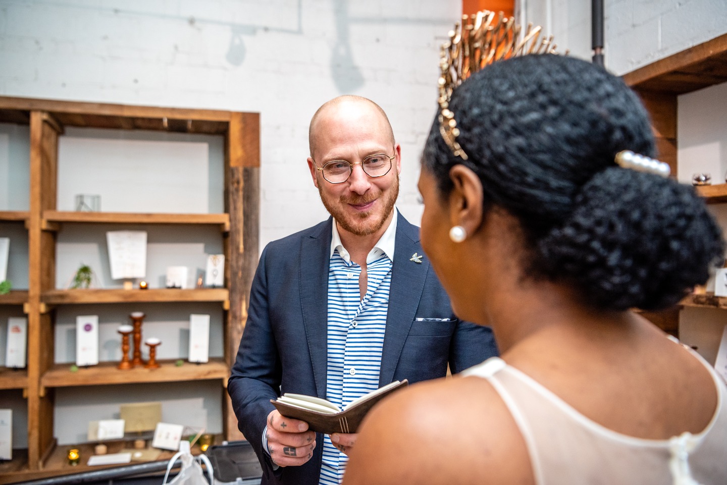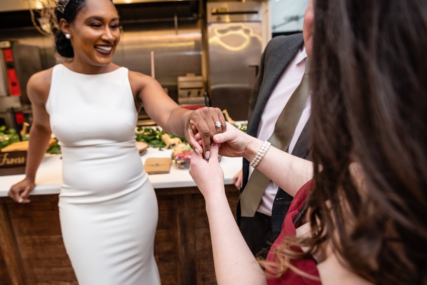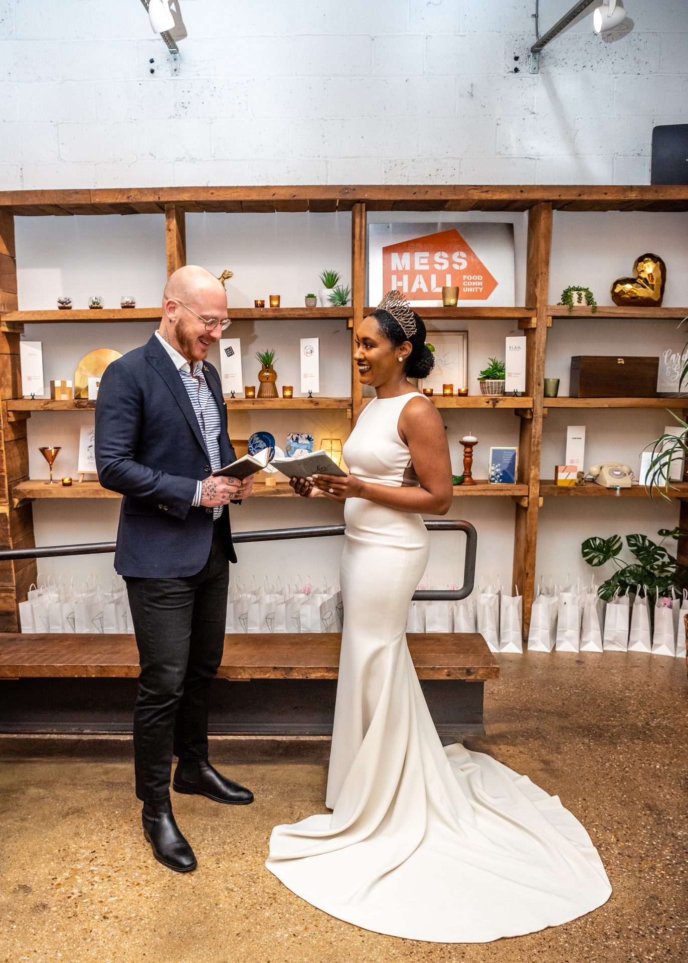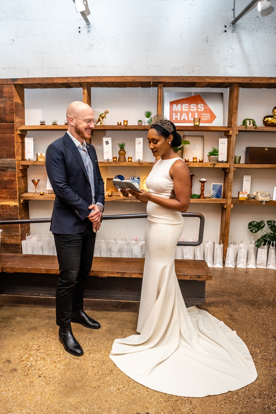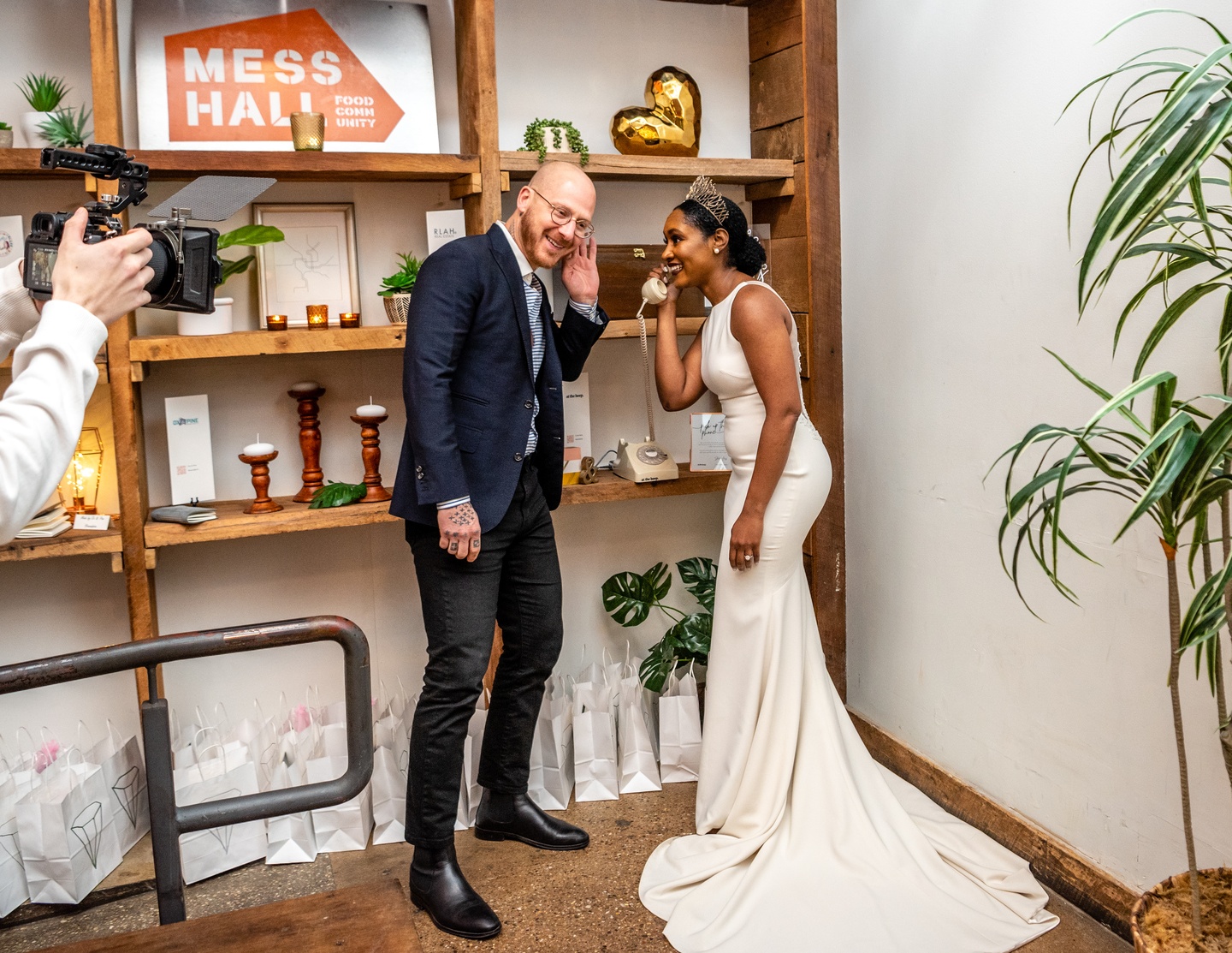 A modern love story unfolded at DC’s Mess Hall in a styled shoot designed by Little Black Book, where industrial warmth met sleek, contemporary style. Against rustic shelving and candlelight, the bride’s embroidered gown and crown paired effortlessly with her partner’s relaxed, refined attire. Mess Hall showcased artistry through a bold charcuterie display, nitro brew, and curated spirits, complemented by minimalist stationery from Type A. Captured with a crisp editorial lens by Photos From the Harty and curated for digital storytelling by Alex Tugbang, the shoot offered a fresh vision of urban romance with flavor-driven sophistication.