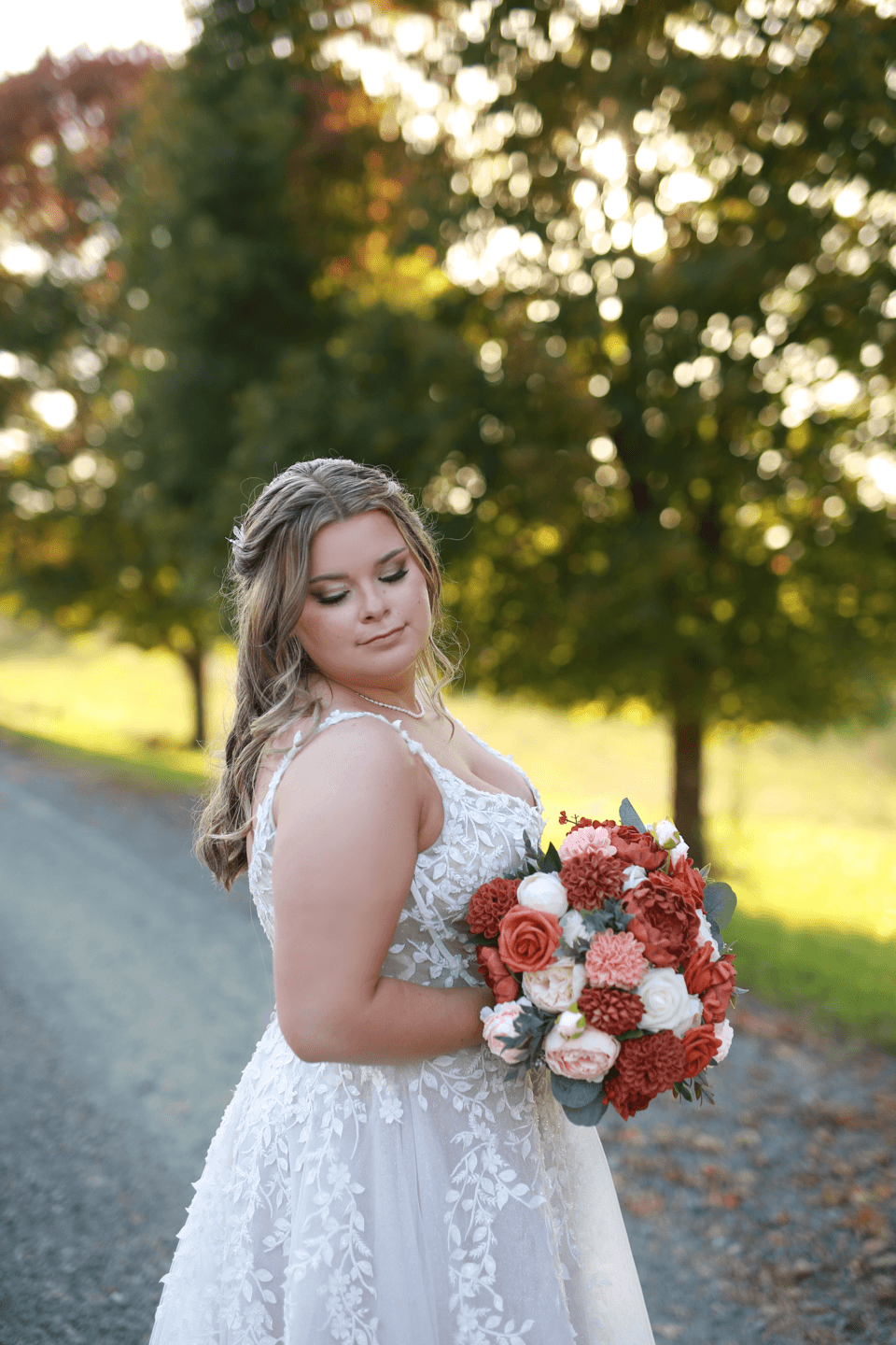In the heart of Ruckersville, Virginia, Natalie and Jacob celebrated their love with a breathtaking autumn wedding at the picturesque Blossom Ridge Farm. Their October celebration embraced the season’s rich beauty, with a palette of burnt orange, soft peach, sage green, and creamy white that reflected the warmth of the Virginia countryside.
