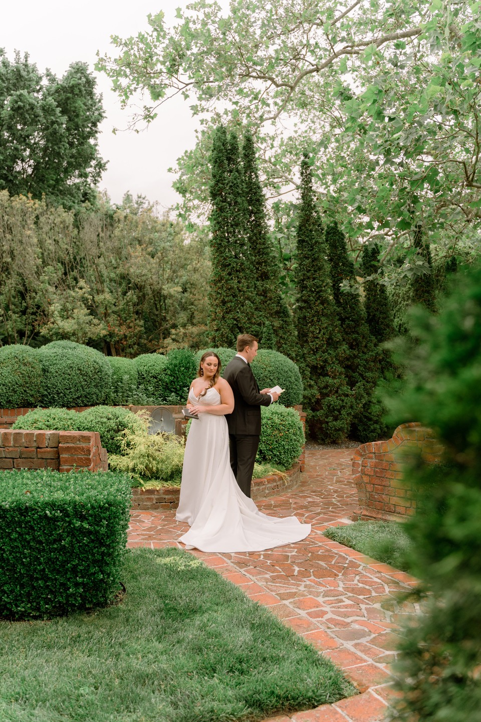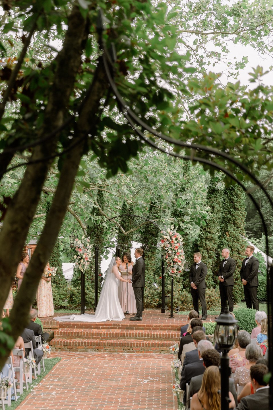 Jaime and Will’s wedding unfolded in the romantic garden setting of Mankin Mansion in Richmond, Virginia, where manicured boxwoods, towering cypress trees, and winding brick pathways created an atmosphere that felt both historic and intimate. Beneath soft summer light, the estate’s lush landscaping became a living backdrop to a day defined by quiet elegance and heartfelt joy.