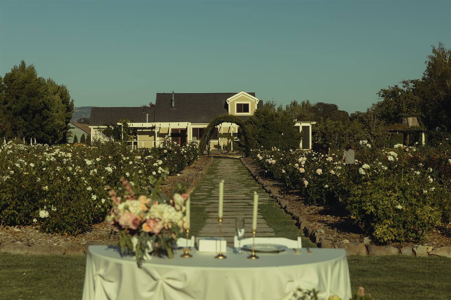 Abigail and Alex celebrated their late-summer wedding at Garden Valley Ranch in Petaluma, where rolling hills and fragrant rose gardens set a romantic Sonoma County backdrop. Their August day unfolded in soft blush, ivory, and sage tones, seamlessly echoing the surrounding landscape.