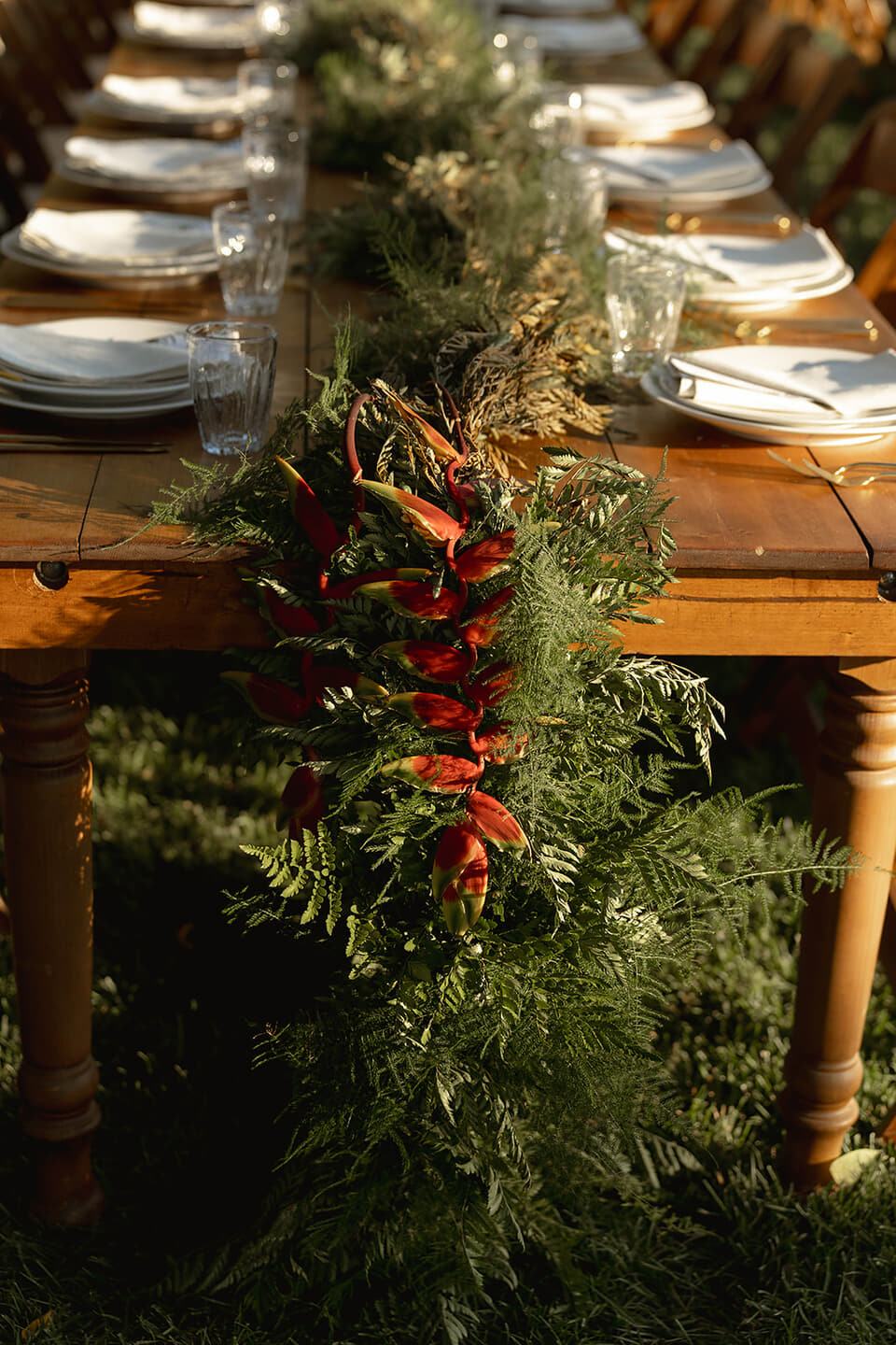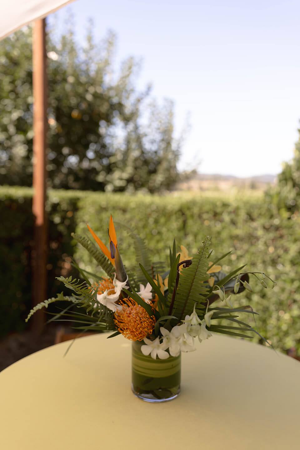 Ari and Jon’s tropical-inspired wedding at Dalya Estate transformed Sonoma wine country into a vibrant botanical paradise. Curated By Alli orchestrated a celebration rich with lush greenery and bold tropical textures, where dramatic heliconia, sculptural orchids, and layered foliage by Sarah Padilla Design brought the landscape to life.