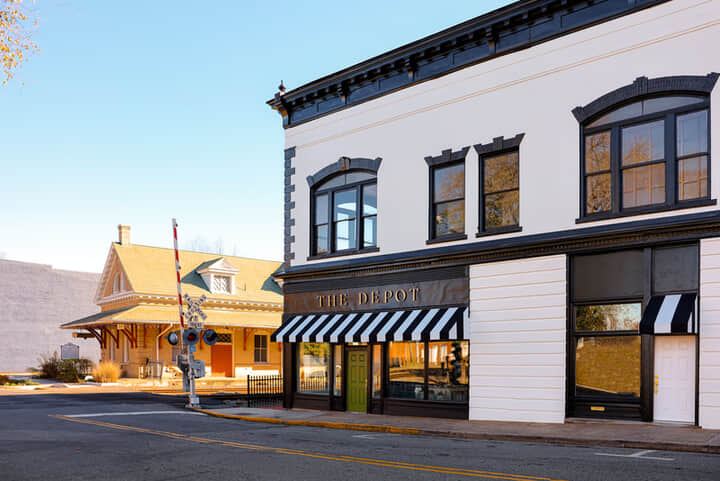 Imagine celebrating your wedding at The Grelen Depot in Orange, Virginia, where rustic charm meets modern elegance. This historic venue creates an intimate, welcoming atmosphere, perfect for exchanging vows surrounded by your loved ones. Picture your ceremony in a space with exposed brick walls and wooden beams overhead. Your cascading bouquet of white blooms, lush greenery, and soft peach accents, beautifully designed by Lacy’s Florist, adds a personal touch to the natural setting. Sleek Chiavari chairs line the aisle, leading your guests toward the most special moment of your life, all captured effortlessly by Hank G Media.