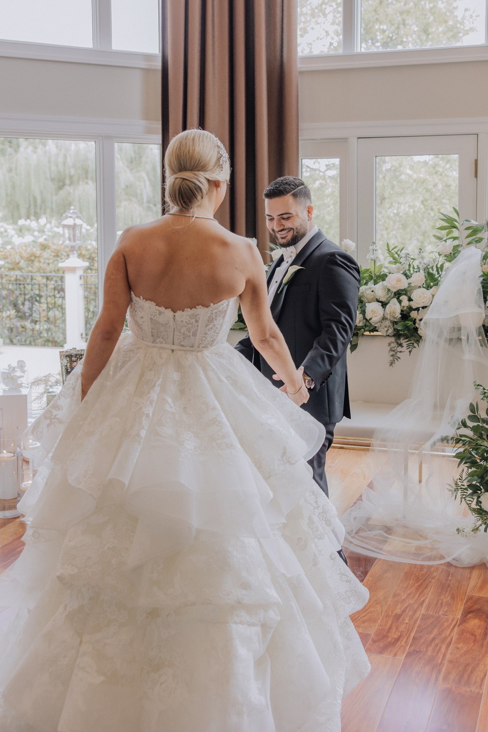 Ani and Gary’s late-summer wedding at The Bellevue Conference & Event Center in Chantilly, Virginia, was a breathtaking celebration of love, elegance, and timeless romance. Their September day unfolded in a refined palette of white and green, where every floral detail and candlelit moment reflected pure sophistication.