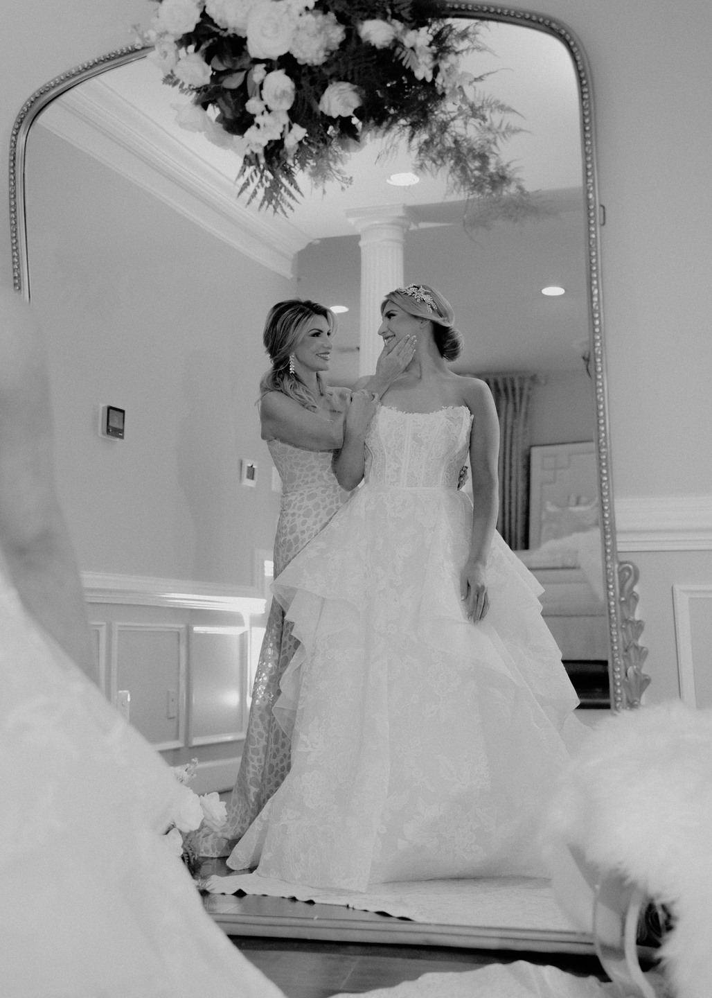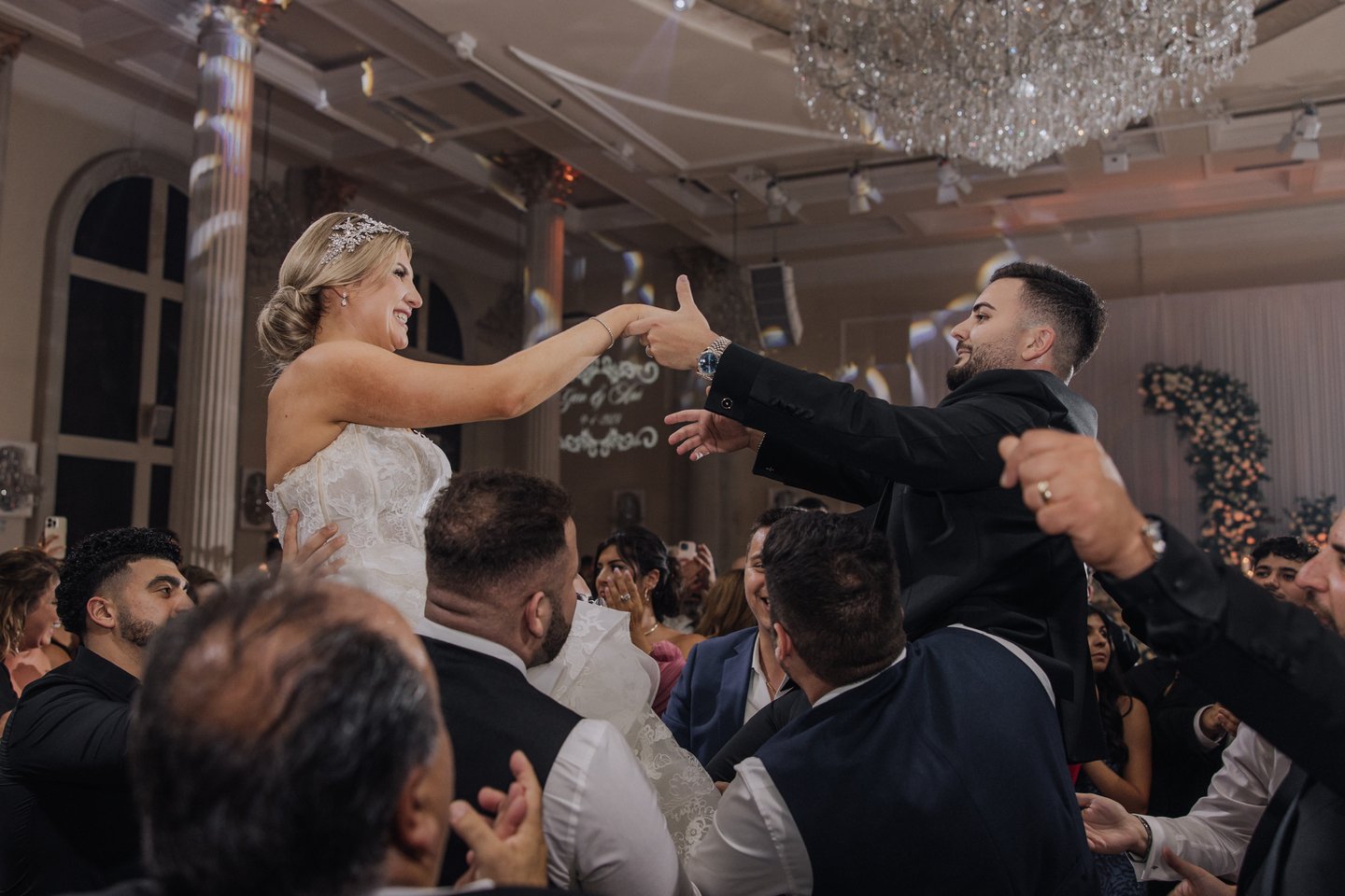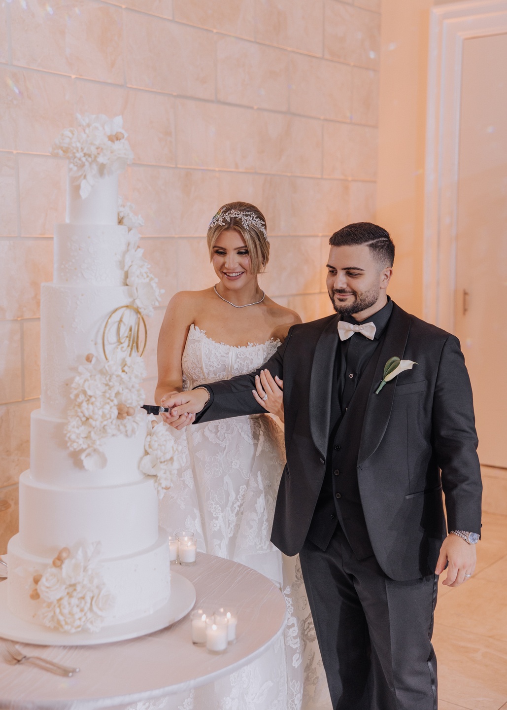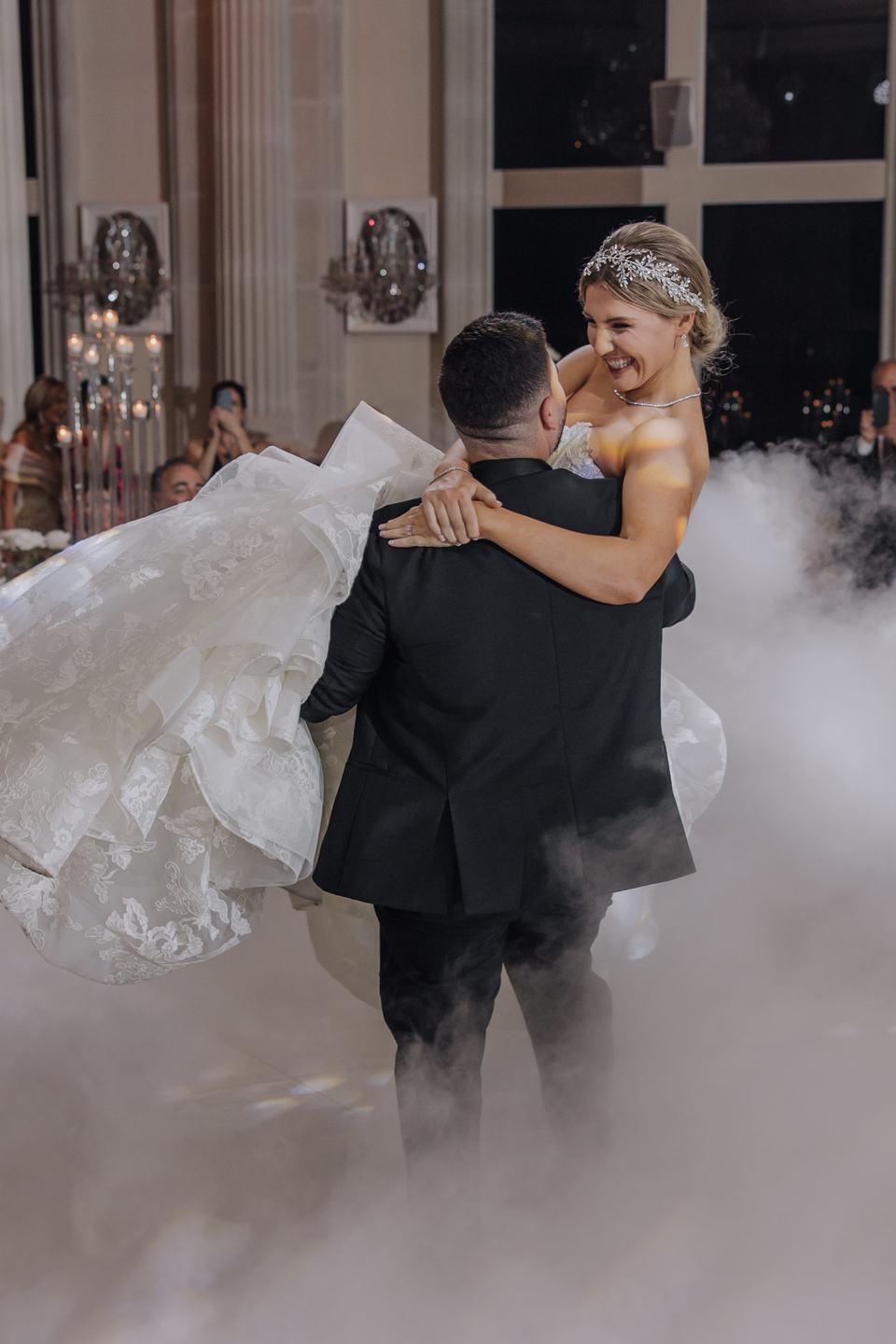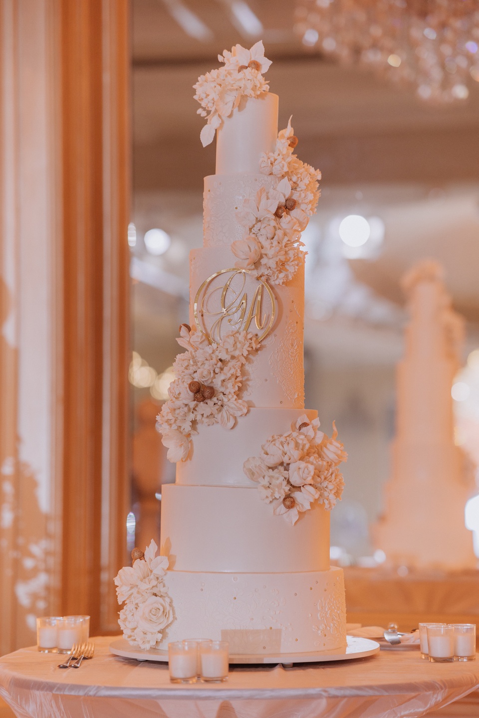 With expert planning by Viva La Fiesta Planit, the celebration was a seamless blend of grandeur and intimacy. The grand ballroom at The Bellevue radiated with luxury—massive crystal chandeliers cast a soft, romantic glow over long tables draped in white linens, adorned with cascading floral runners that seemed to float effortlessly above the surface. Gold Chiavari chairs and tall candelabras added a regal touch, while lush arrangements of hydrangeas, roses, and trailing greenery transformed the space into a botanical dreamscape. A six-tier cake, adorned with intricate sugar flowers and a custom gold monogram, stood as a showstopping centerpiece surrounded by flickering candlelight. Paperboys preserved the day in both photo and film, blending refined artistry with emotional depth. SuroMusic Entertainment brought the celebration to life, from the couple’s ethereal first dance surrounded by soft fog to the upbeat rhythms that kept the dance floor alive late into the night.