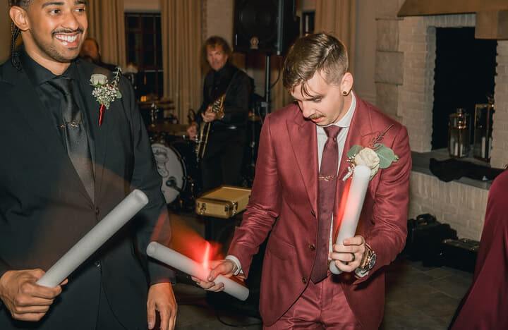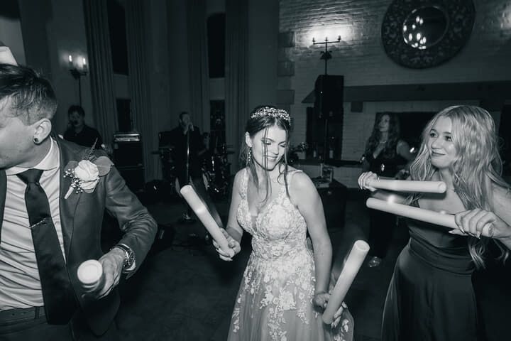 The evening's sweetest moment came as the couple shared their first slice of Gateau's masterpiece - a three-tiered semi-naked cake adorned with fresh flowers that echoed the day's color palette. As night fell, guests created a magical tunnel of sparklers, illuminating the newlyweds' joyful exit and marking the perfect end to their perfect day.