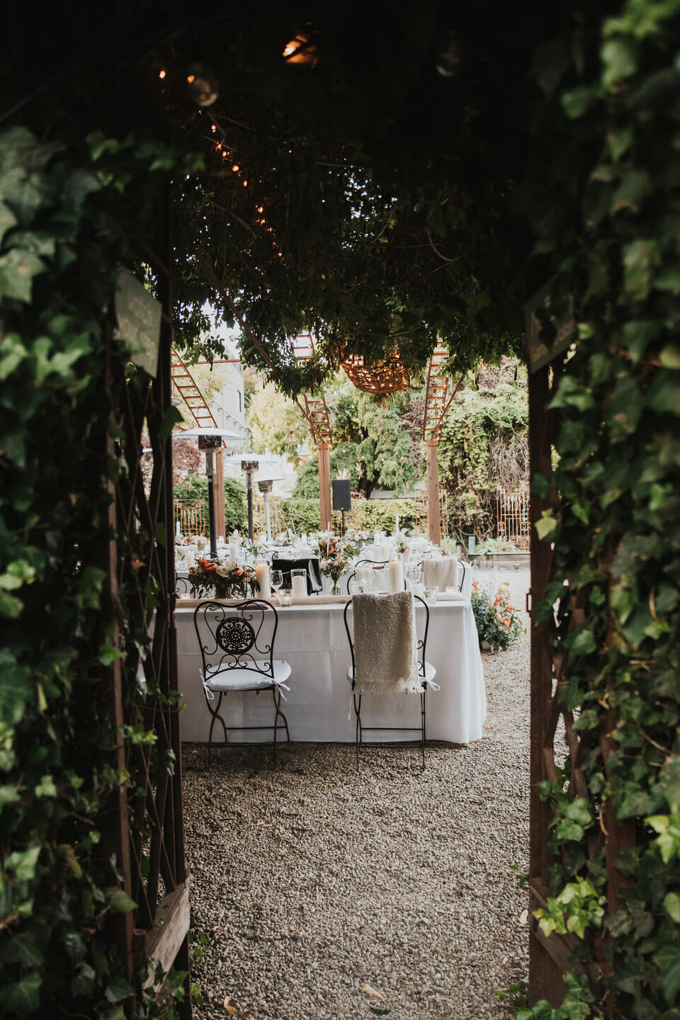 - Lush gardens, ivy draped walls, wisteria covered armatures, twinkling lights, and a glass fountain create beautiful portrait backdrops.