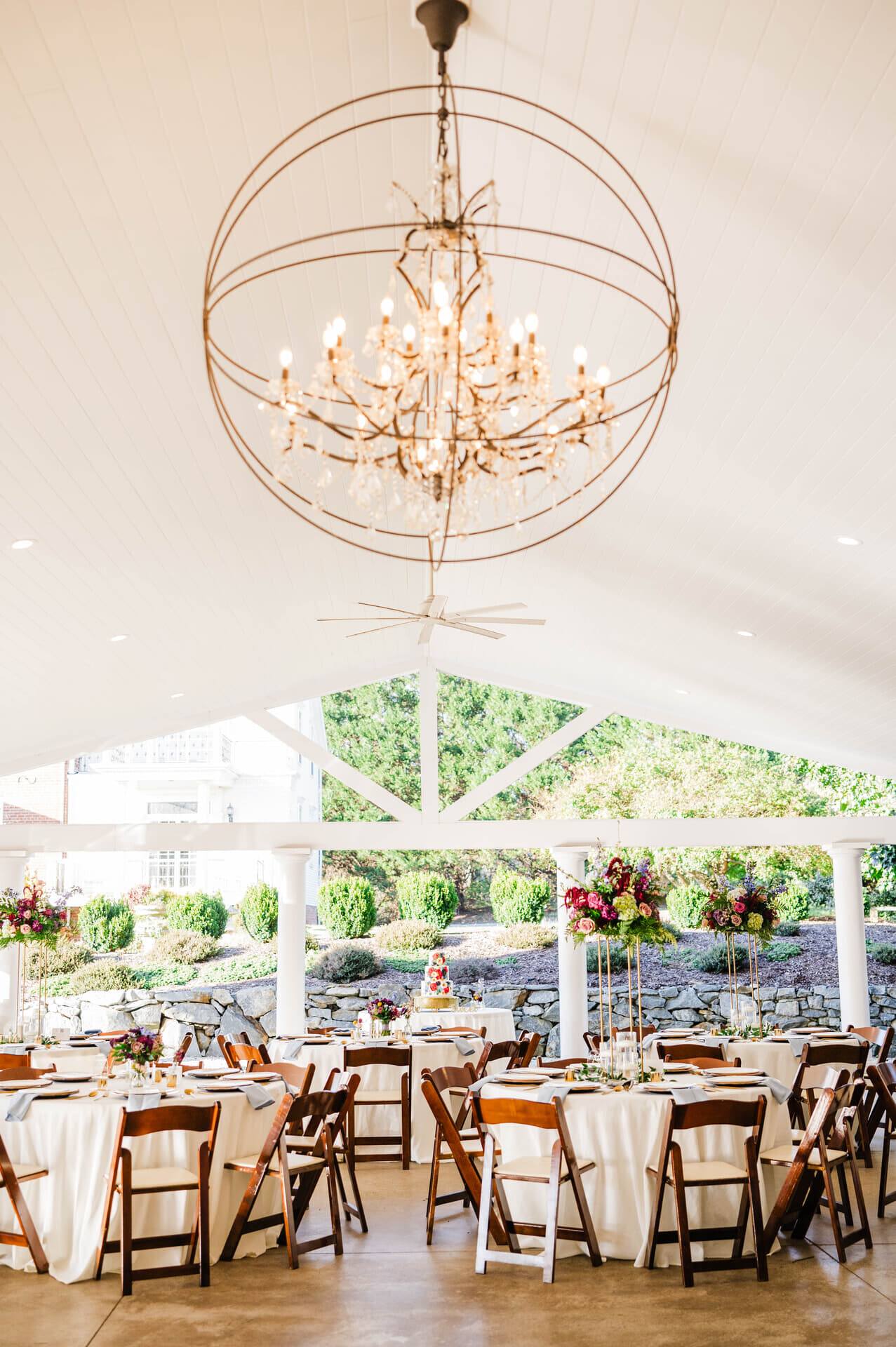 - Ceremony & Celebration Spaces: Exchange vows at your choice of three unique settings—the rose-draped arbor, spacious gardens, or the historic manor. Host an outdoor cocktail hour on the stone patio beneath the glow of a Blue Ridge Mountain sunset, then move to the covered pavilion for a lively reception.