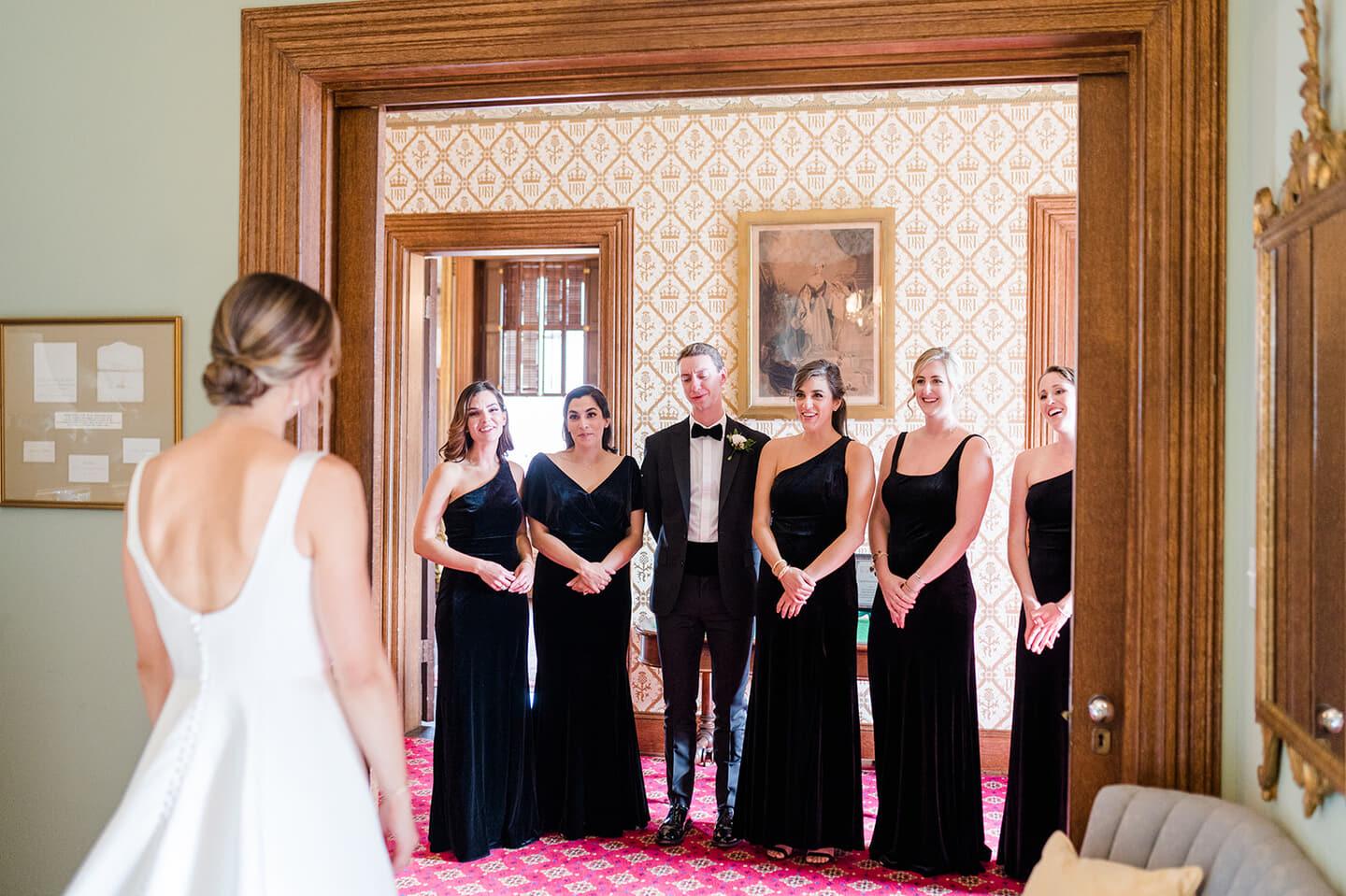 Inside, grand staircases, gleaming woodwork, and intricate moldings reflect the mansion’s 19th-century grandeur. Sunlight spills through tall windows, illuminating spacious parlors and high ceilings that set the tone for an unforgettable celebration. Beyond the walls, manicured gardens offer a romantic space for outdoor ceremonies, cocktail gatherings, or portraits surrounded by heritage and beauty.
