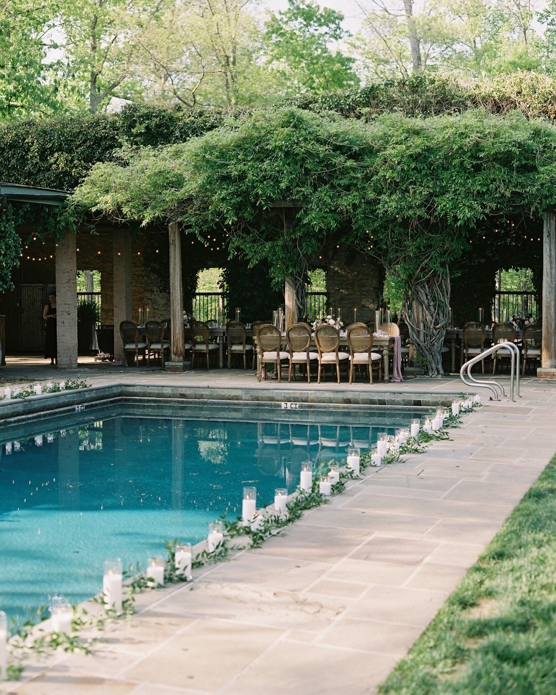 - Host a poolside cocktail hour and take in views of the surrounding farm and rolling hills from the pergola