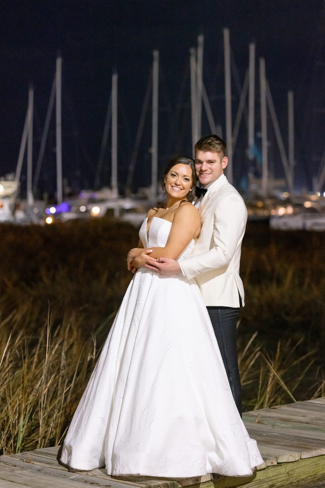 - Stage your first look on the wooden dock stretching out over the reflective Ashley River
